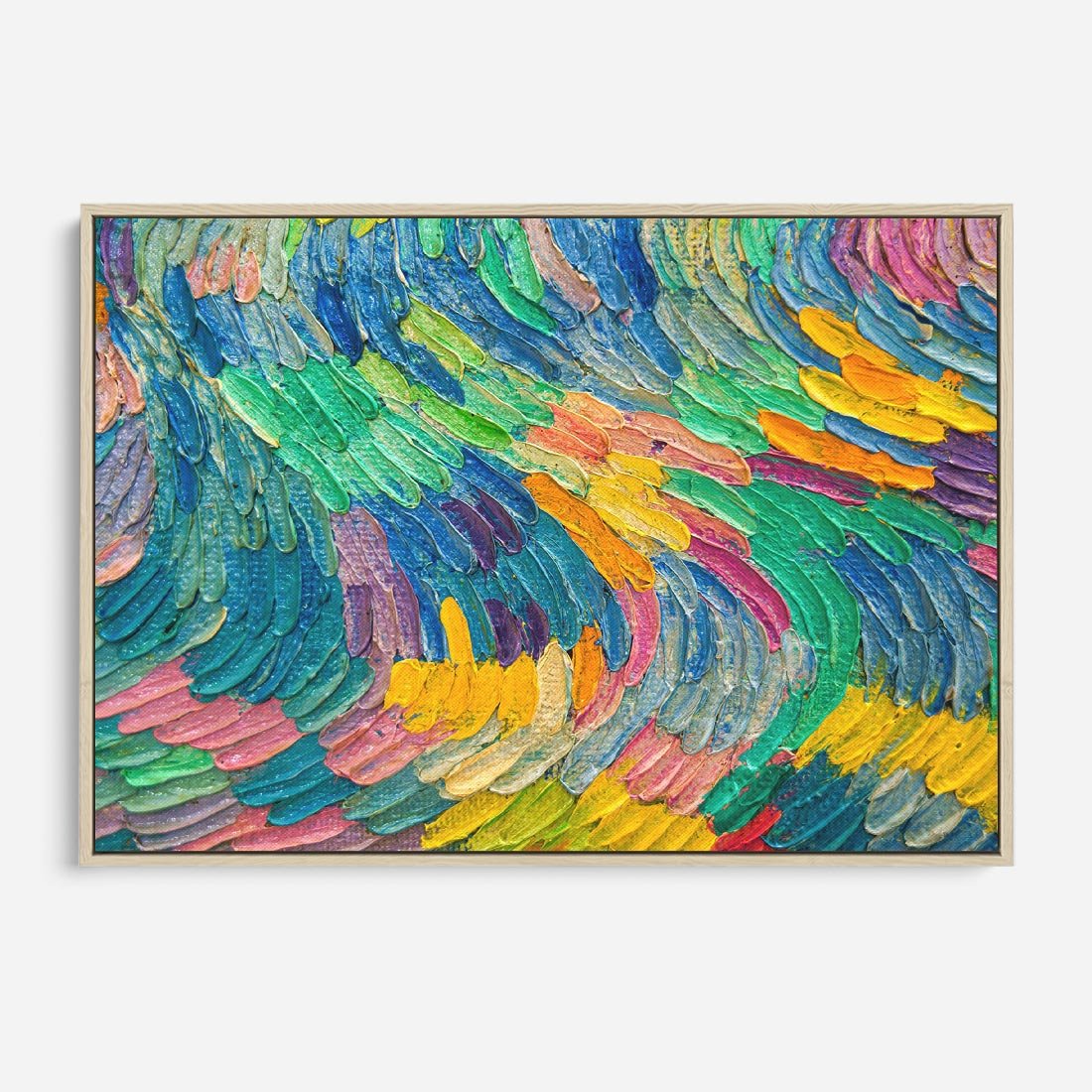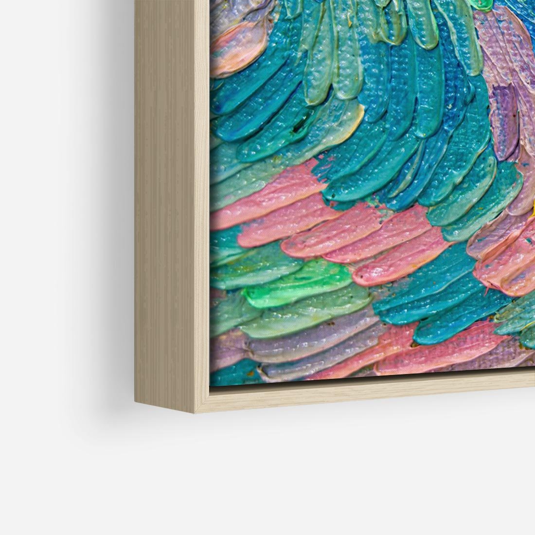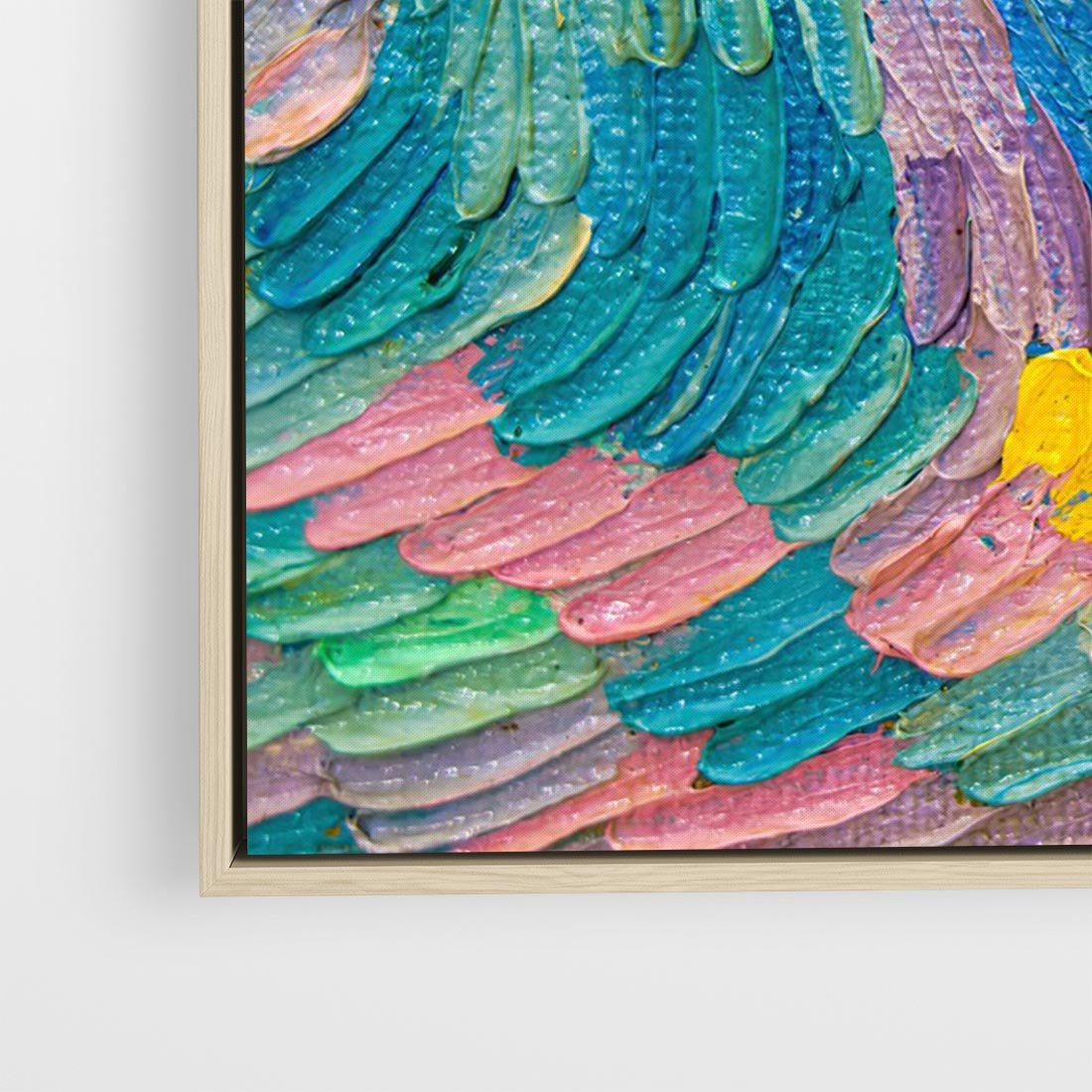 Obraz w ramie 100x70 - Egzotyczne Pióra - abstrakcyjne dzieło, farby olejne - rama drewno