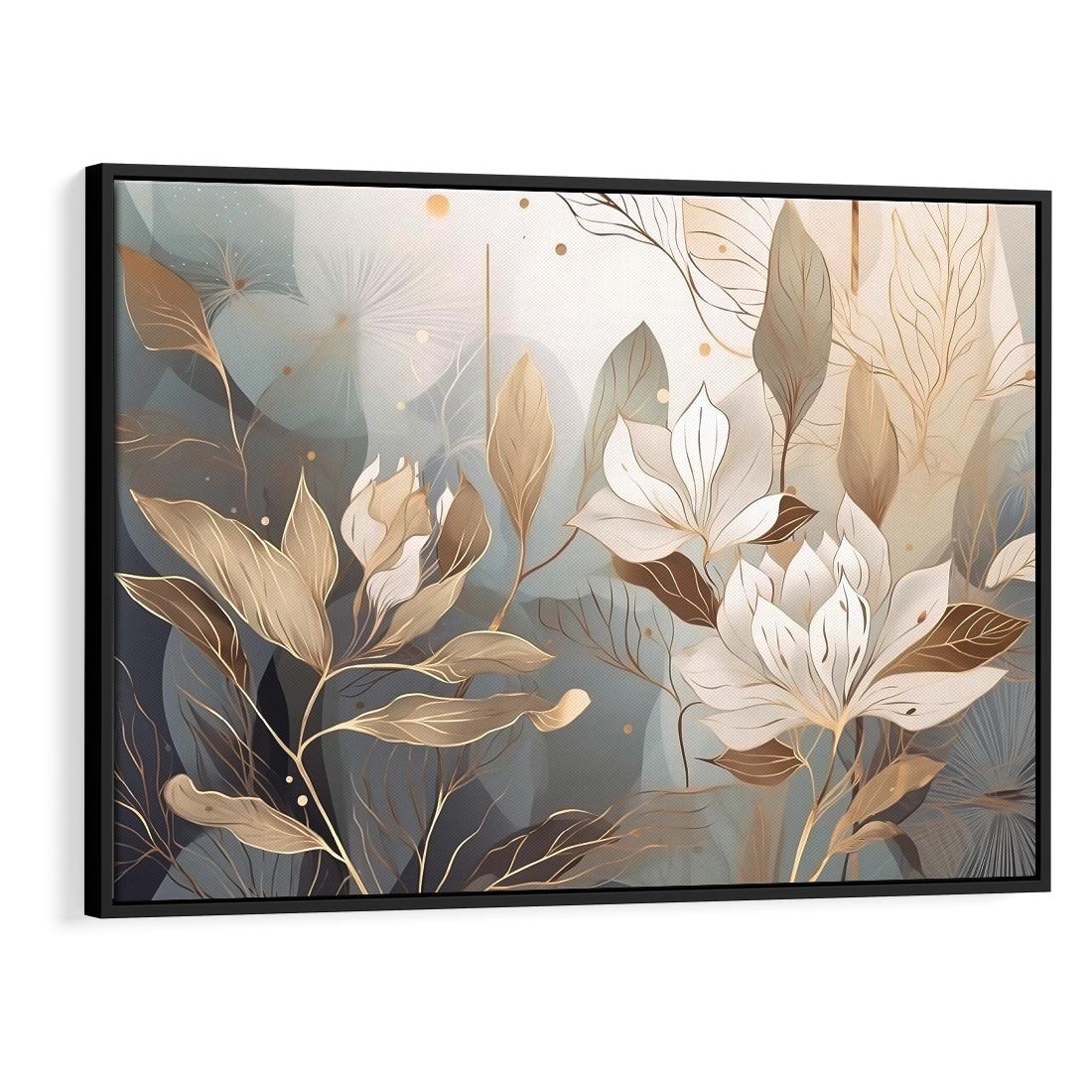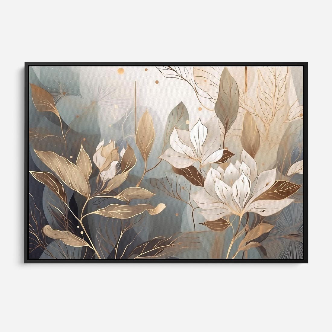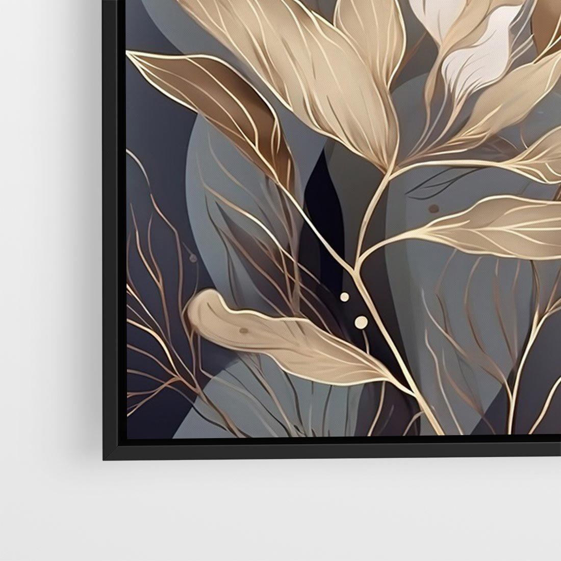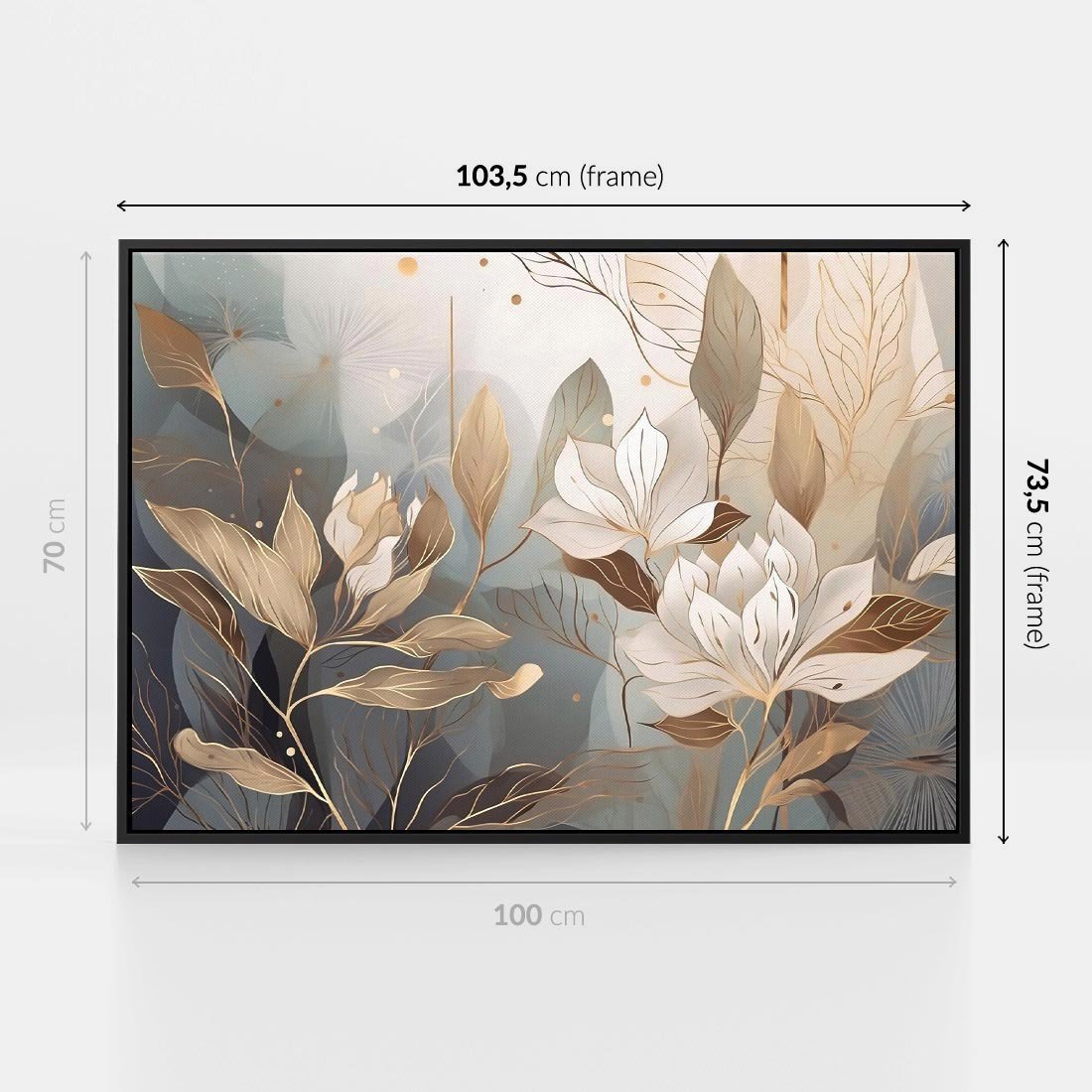 Ta nowoczesna grafika przedstawia złote kwiaty, które rozkwitają w blasku światła. Ich piękno i elegancja doskonale pasują do wnętrz glamour, dodając im wyjątkowego charakteru. To artystyczne dzieło sztuki wprowadza luksusowy akcent do Twojego wnętrza, zachwycając oryginalnością i złotym blaskiem.