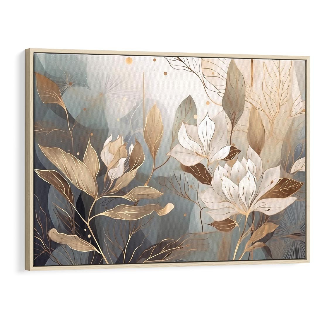 Ta nowoczesna grafika przedstawia złote kwiaty, które rozkwitają w blasku światła. Ich piękno i elegancja doskonale pasują do wnętrz glamour, dodając im wyjątkowego charakteru. To artystyczne dzieło sztuki wprowadza luksusowy akcent do Twojego wnętrza, zachwycając oryginalnością i złotym blaskiem.