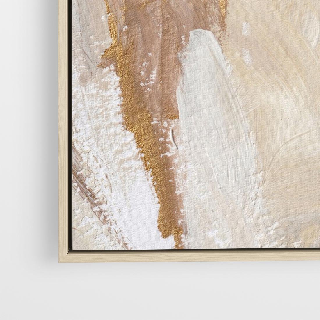 Obraz w ramie 100x70 - Elegancja w Złocistym Chaosie - złoto beż, abstrakcja - rama drewno