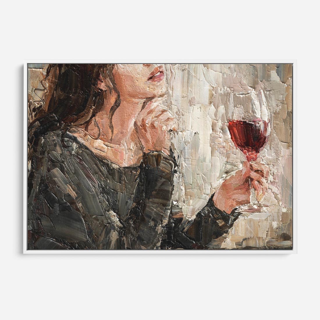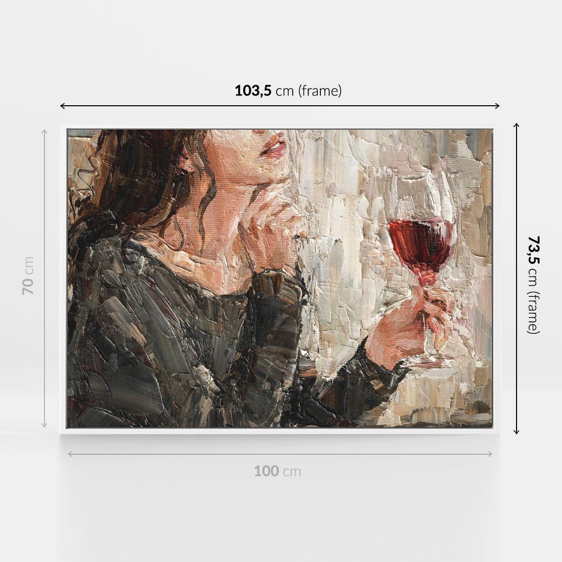 Obraz w ramie 100x70 - Esencja - kobieta wino obraz impresonizm olej na płótnie - rama biała