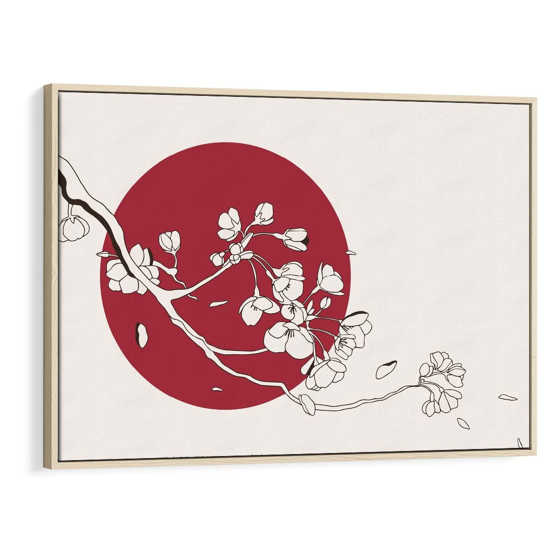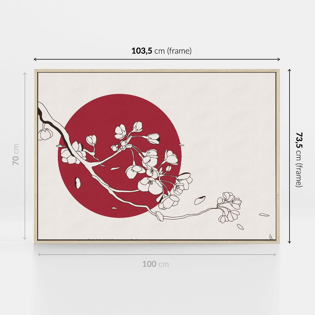 Obraz w ramie 100x70 - Esencja Zen - kwiatnąca wiśnia, orientalna grafika - rama drewno