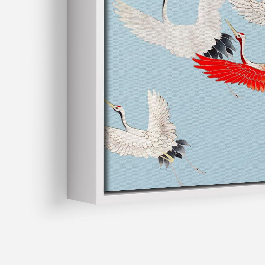 Obraz w ramie 100x70 - Eteryczne Żurawie - lecące żurawie, orientalna sztuka - rama biała