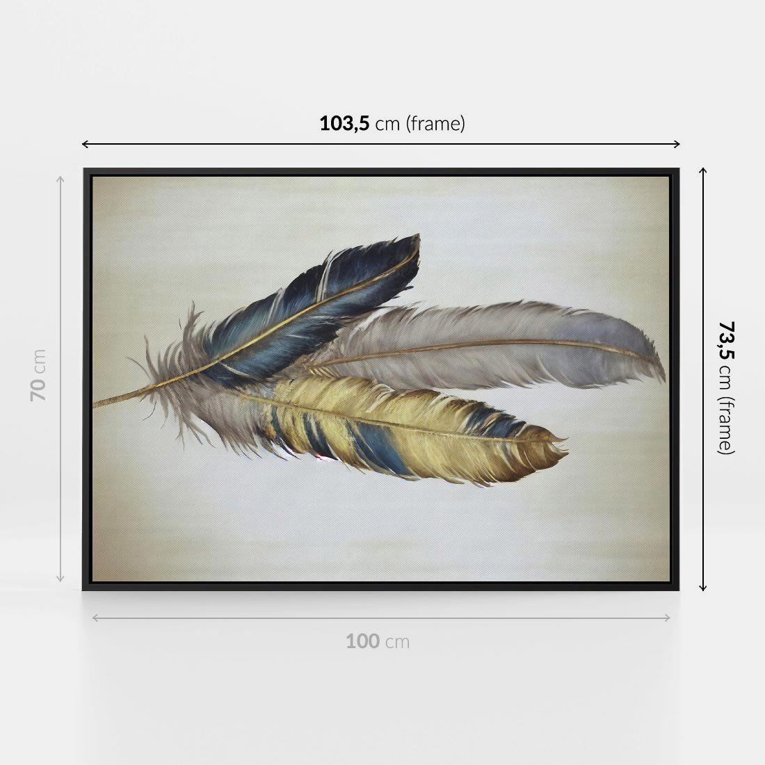 - Obraz w ramie 100x70 - Granatowo-Złote Pióra