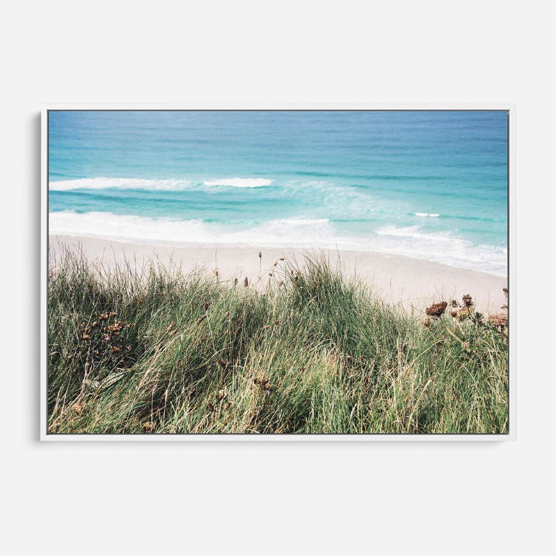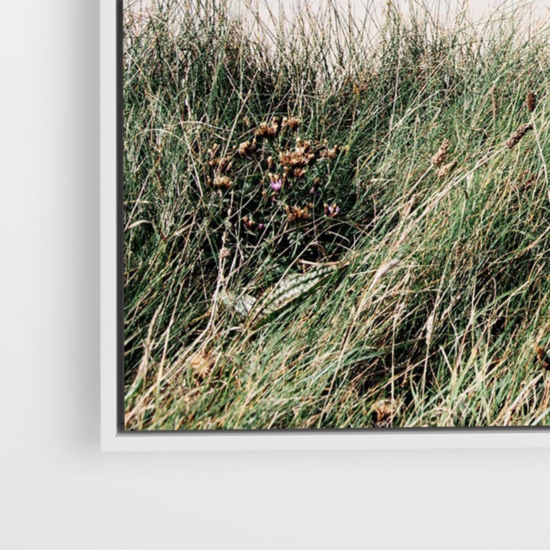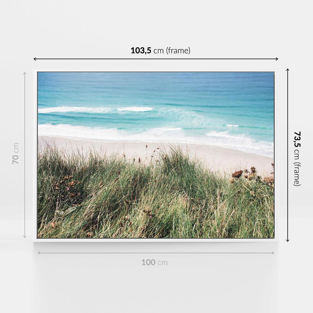 Obraz w ramie 100x70 - Harmonia Natury - widok z wydm, wydmy porośnięte trawami - rama biała