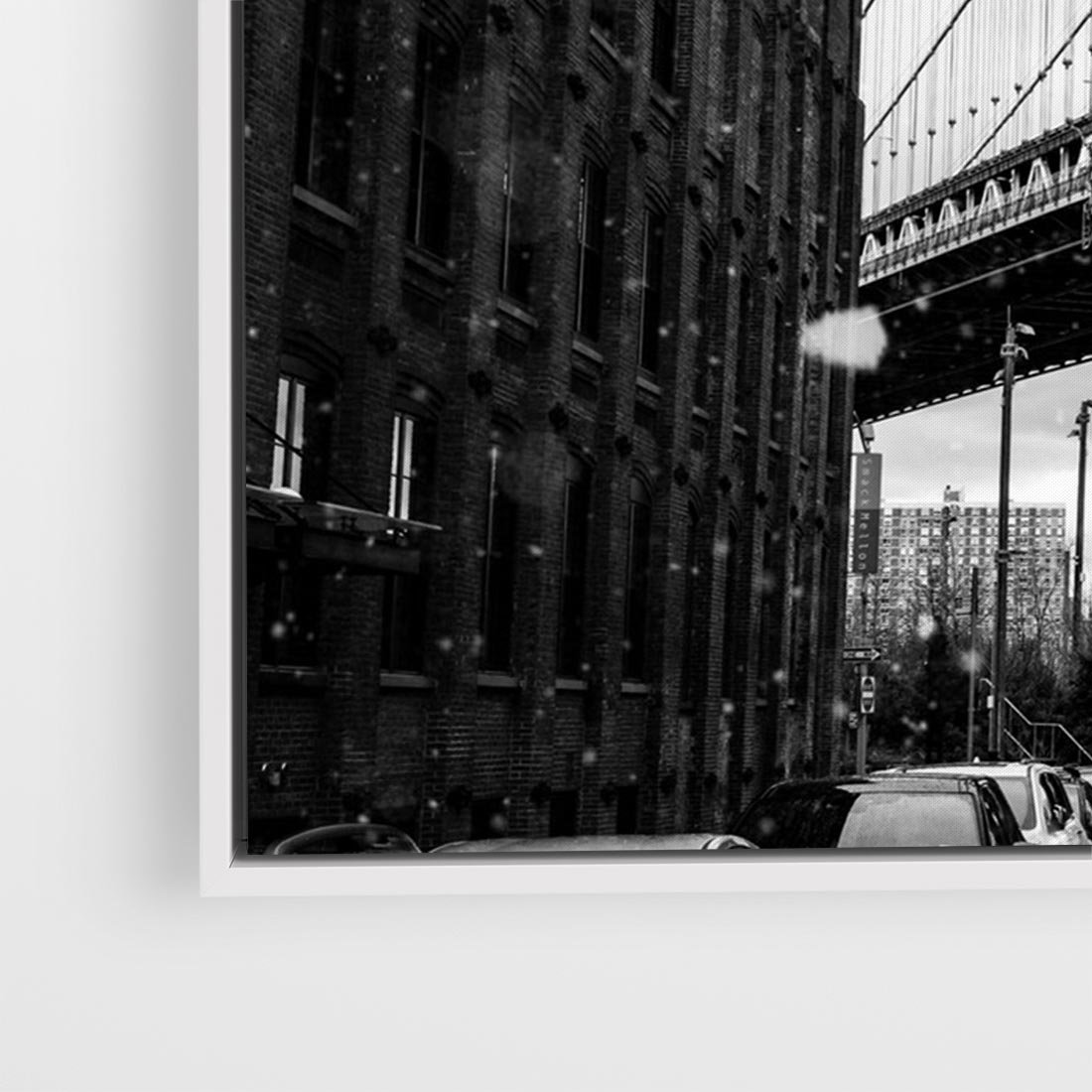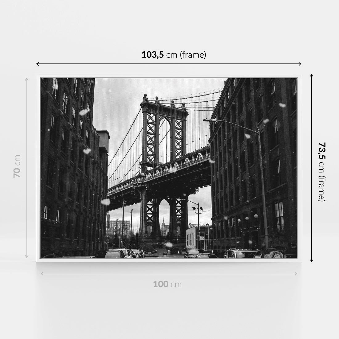 Obraz w ramie 100x70 - Ikona Miasta - Nowy Jork, most - rama biała