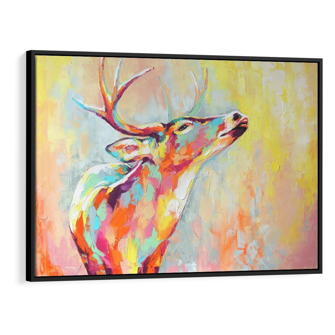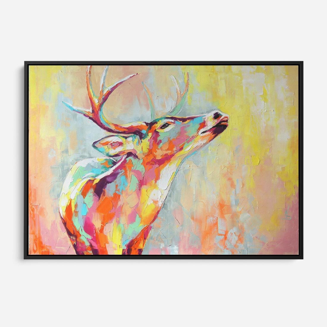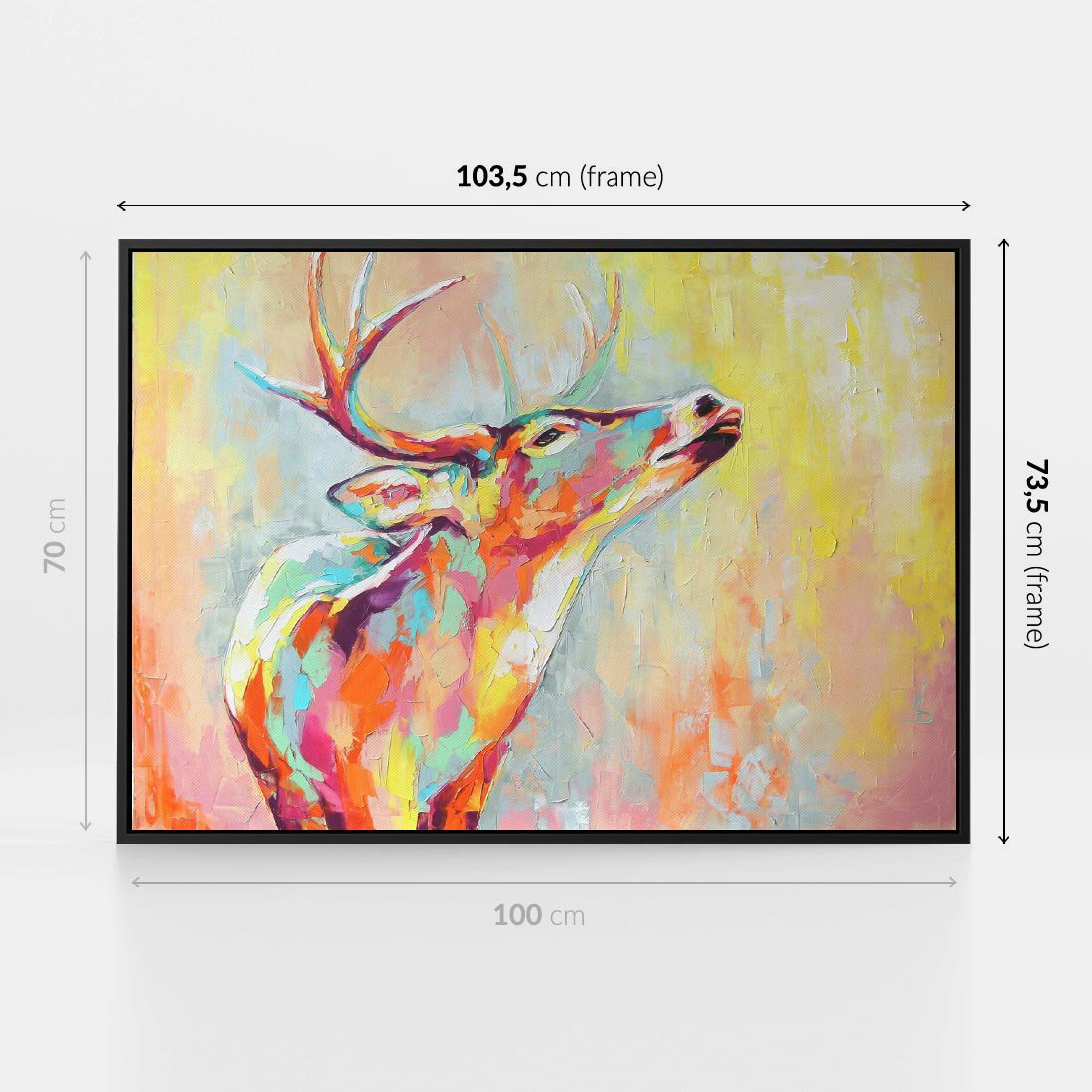 Obraz w ramie 100x70 - Impresje snów malarza - kolorowy olejny obraz, jeleń ryczący na rykowisku - rama czarna