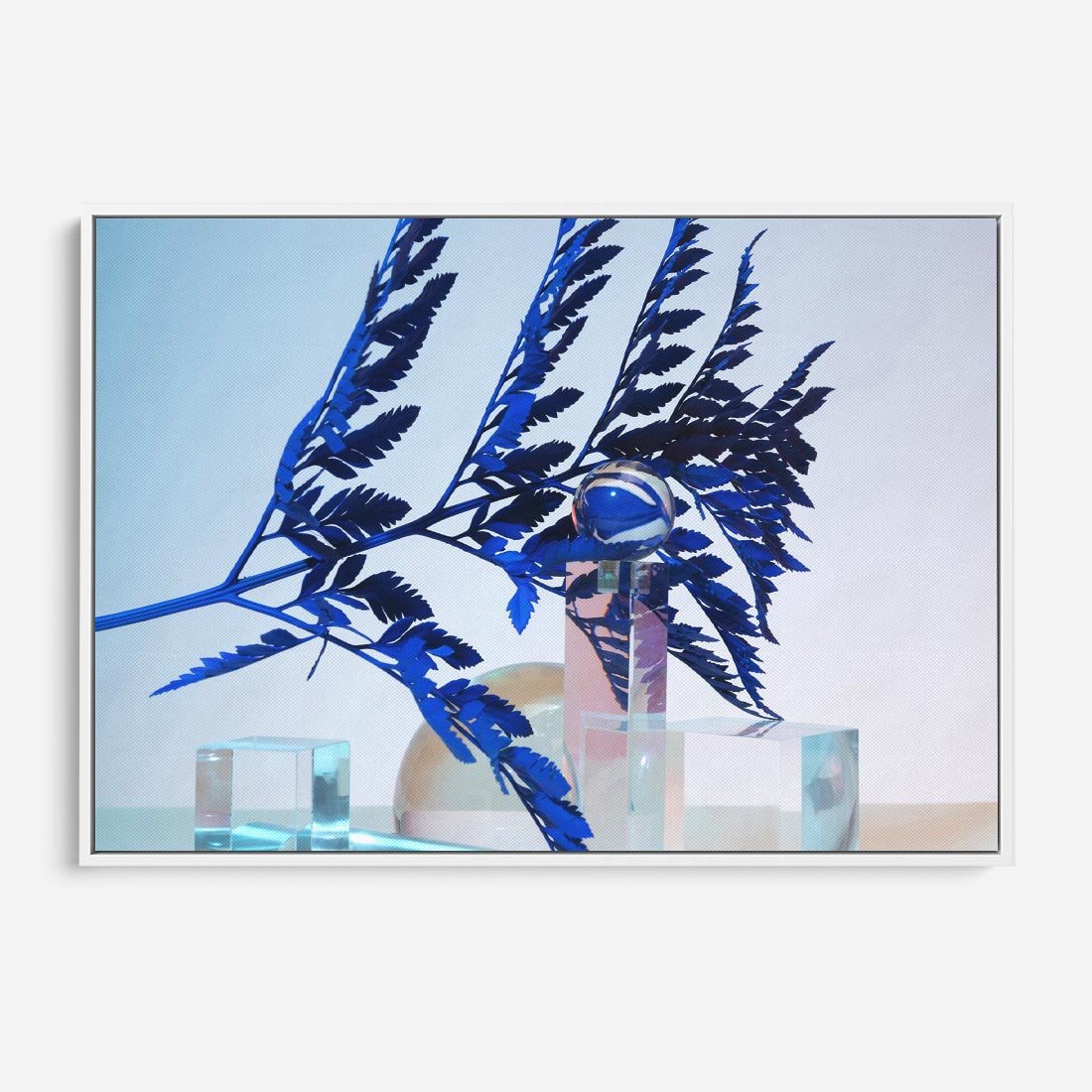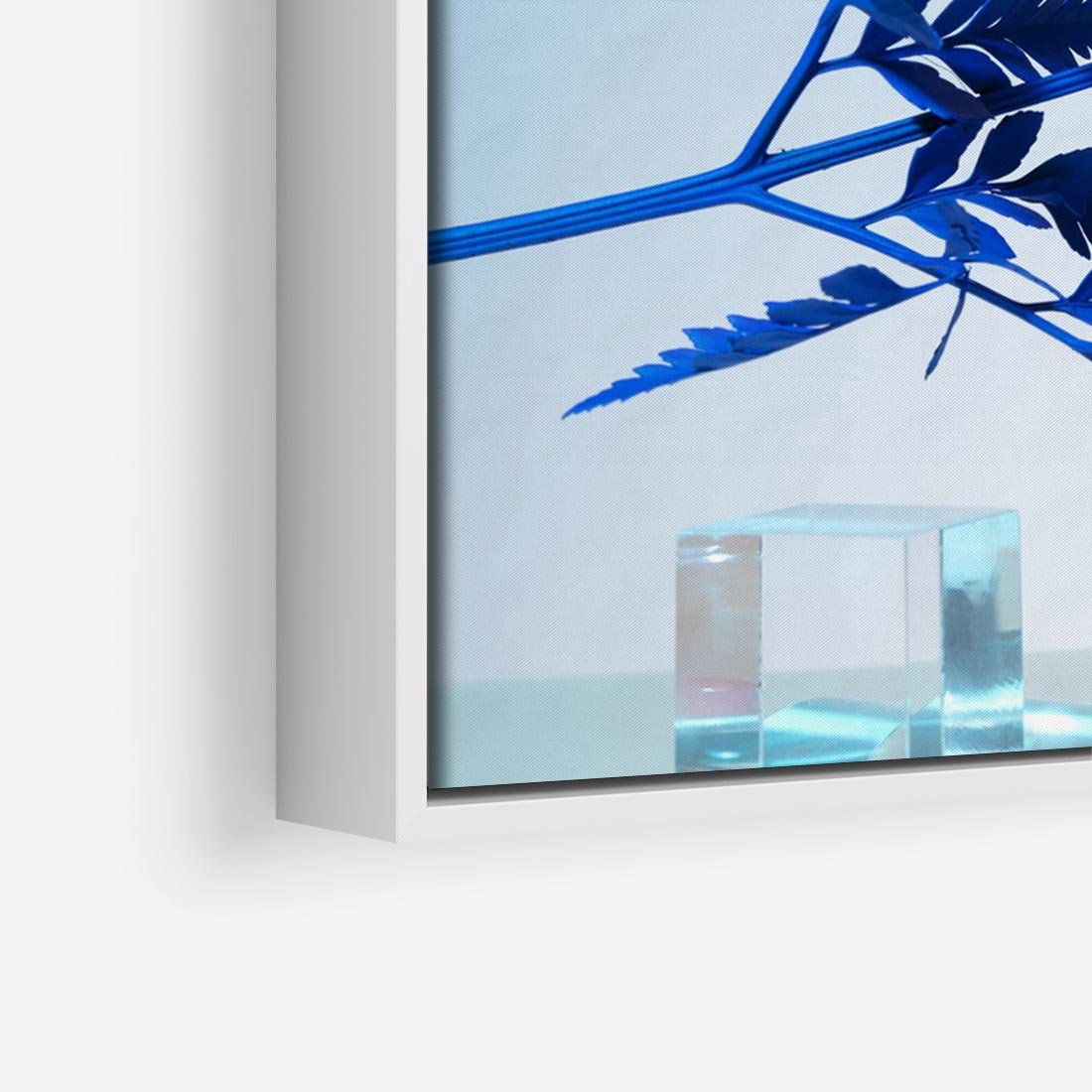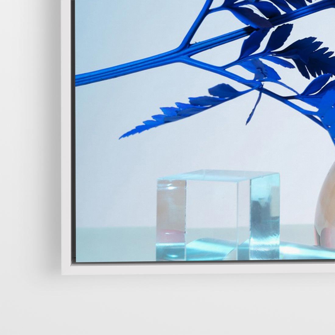 Obraz w ramie 100x70 - Intensywny Kolor Natury - liście, kobalt - rama biała