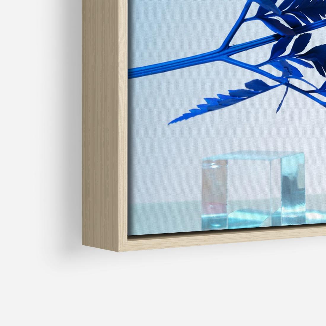 Obraz w ramie 100x70 - Intensywny Kolor Natury - liście, kobalt - rama drewno