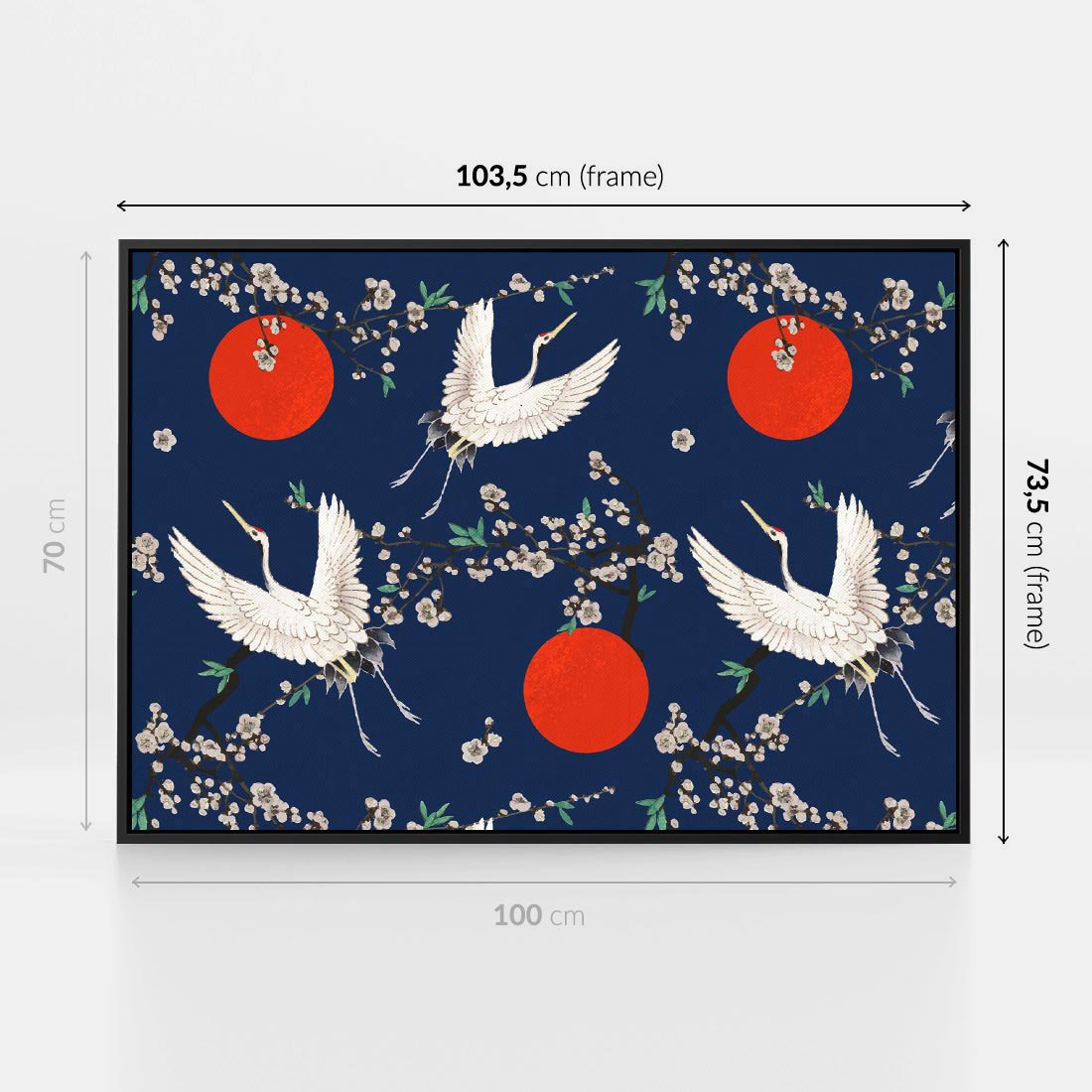 Obraz w ramie 100x70 - Japońskie Żurawie Indygo - sztuka japońska, japonia - rama czarna