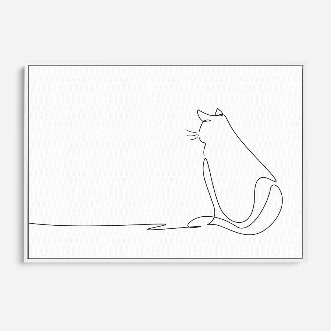 Obraz w ramie 100x70 - Koci Szkic - szkic, line art - rama biała