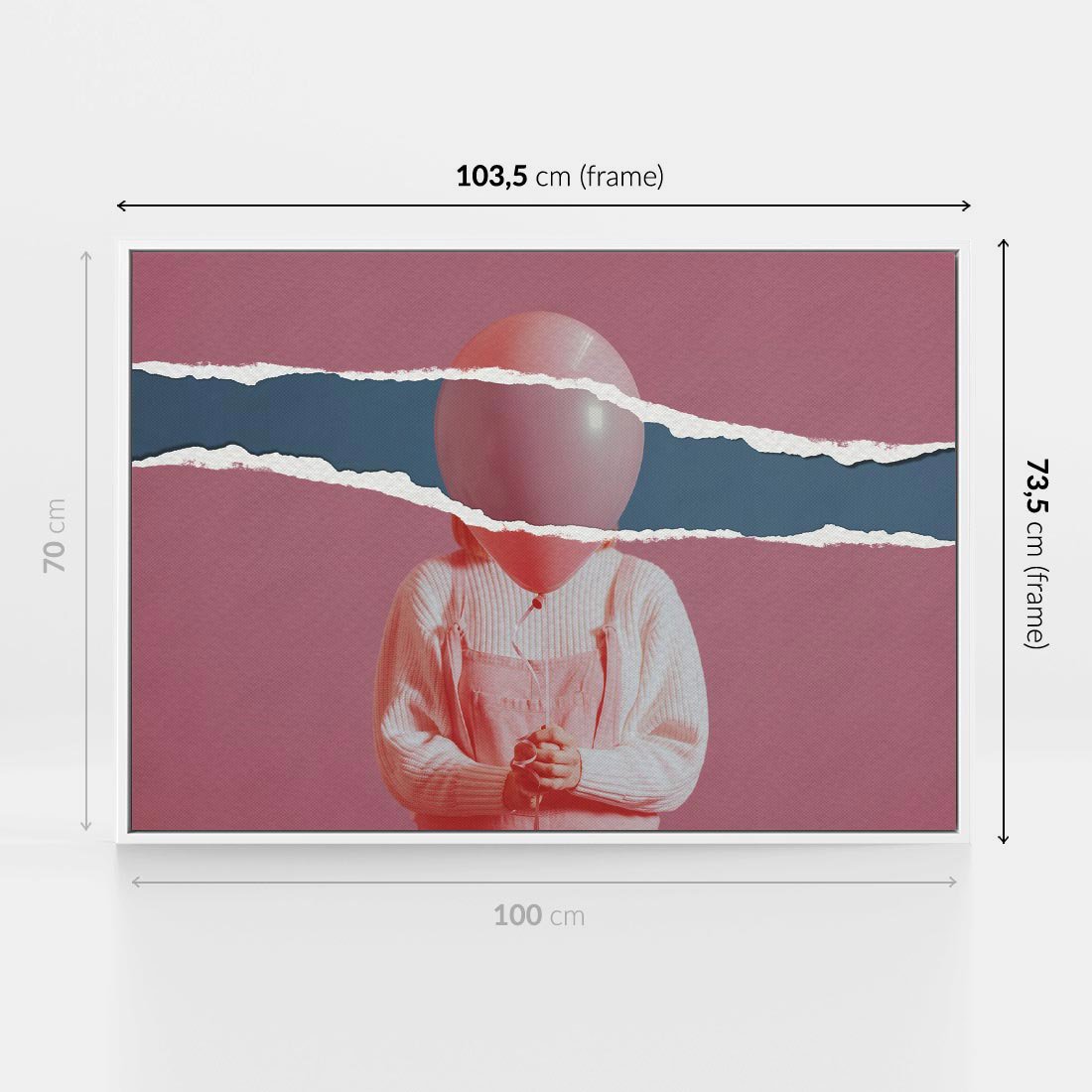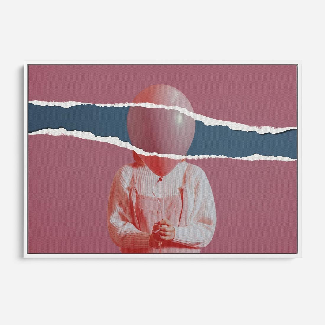 Ten abstrakcyjny kolaż z elementami stylu retro prezentuje dziewczynkę, której głowa zasłonięta jest różowym balonem. Przenosi nas w magiczny świat wyobraźni, gdzie rozdarta kartka nadaje niezwykłego charakteru i zahacza o tematykę snów i pragnień.