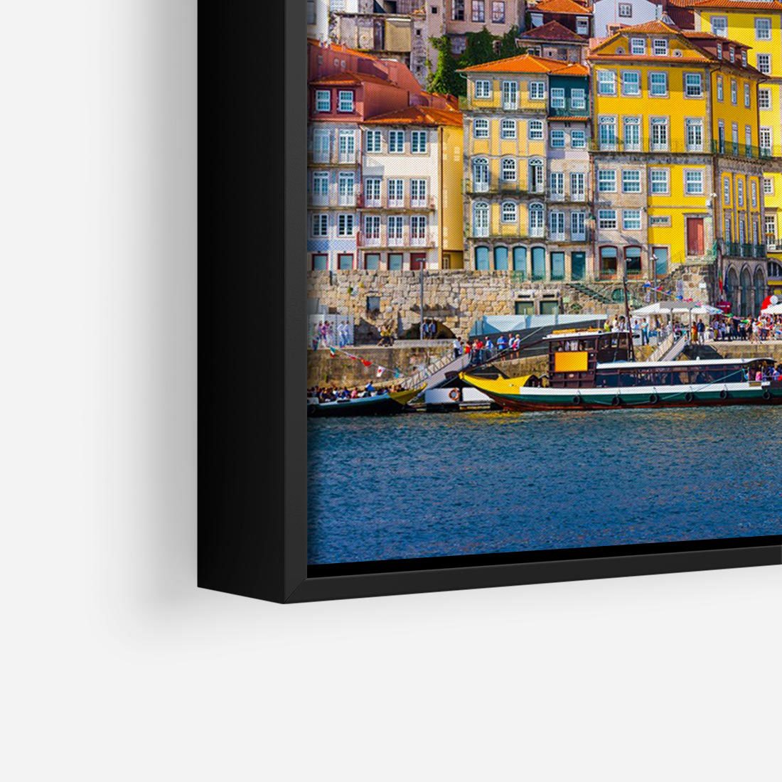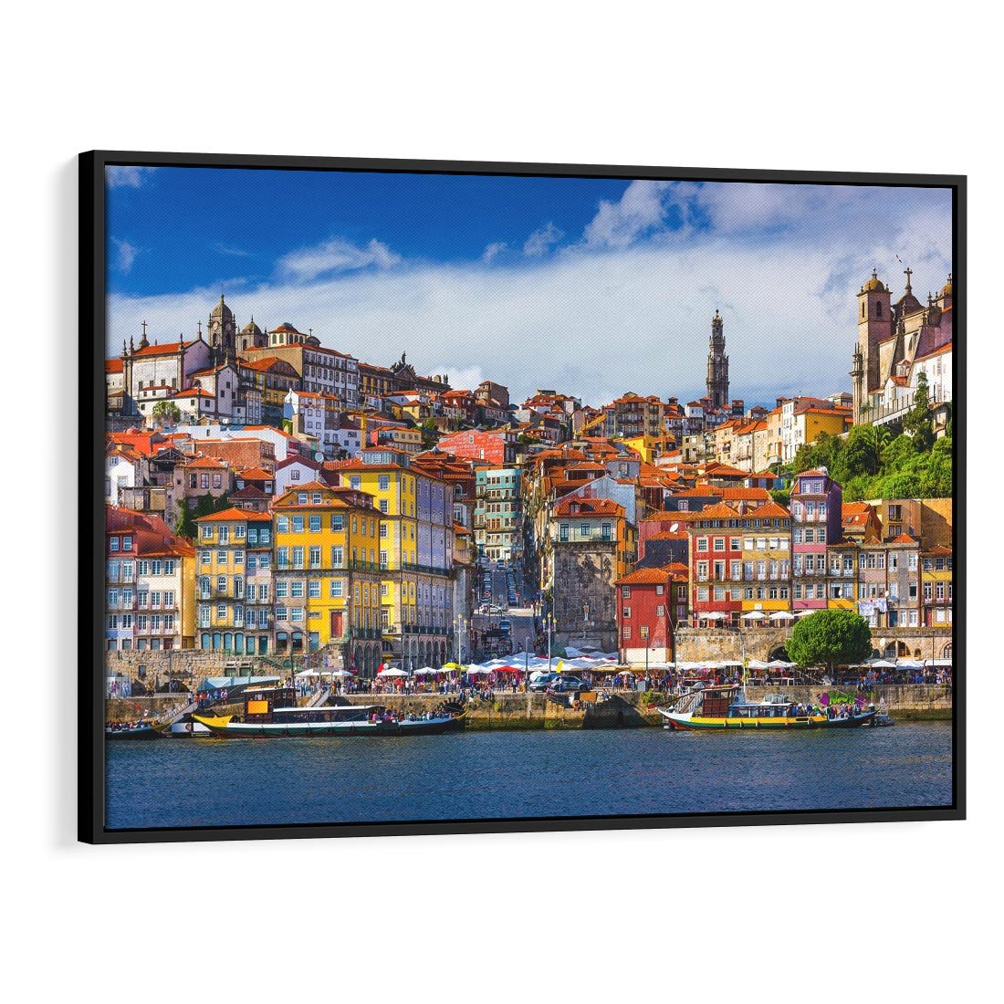 Obraz w ramie 100x70 - Kolorowa Przystań - nadmorskie miasto, kolorowe budynki - rama czarna