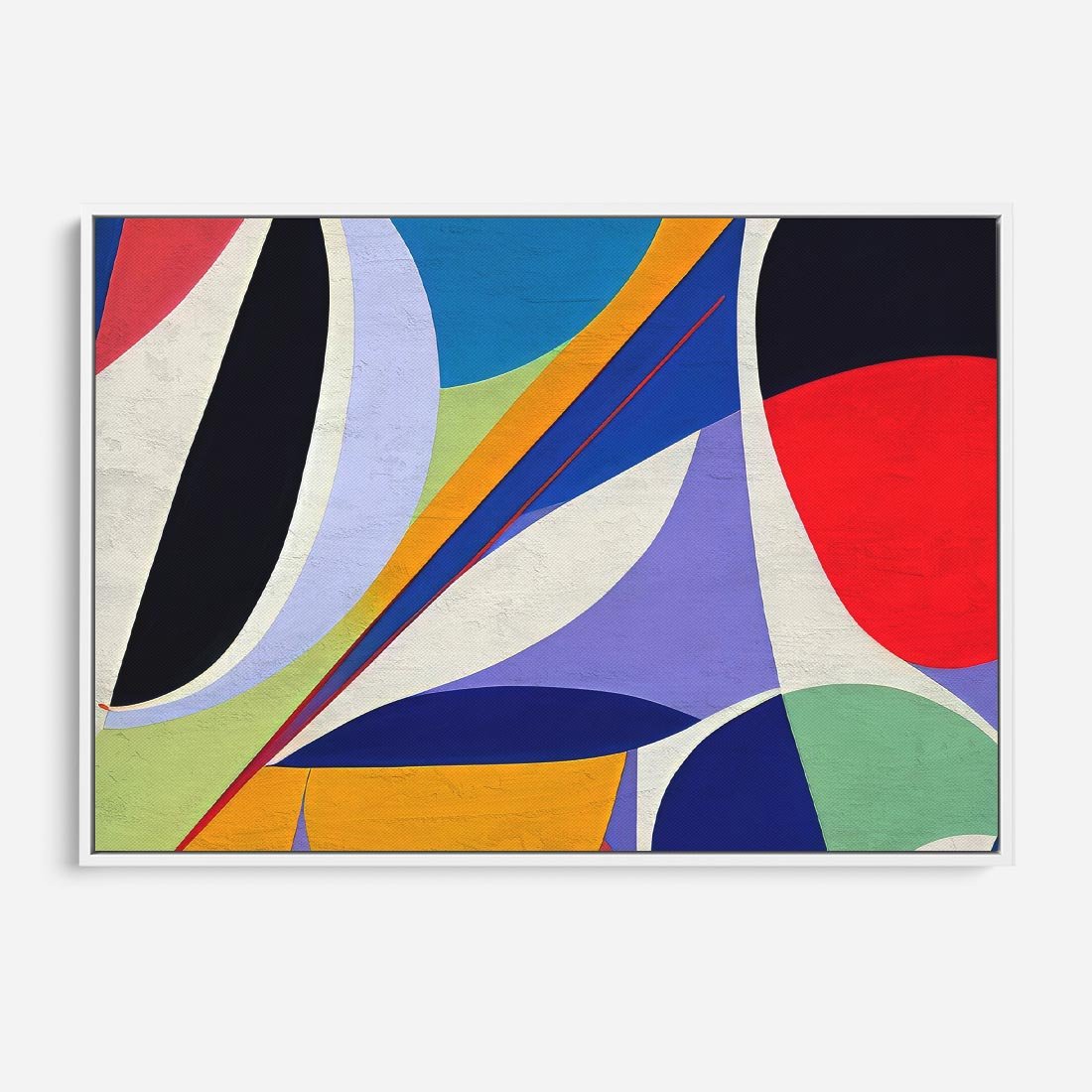 Obraz w ramie 100x70 - Kolorowe Przesunięcia Kształtów - abstrakcyjny obraz olejny, żywe kolory - rama biała