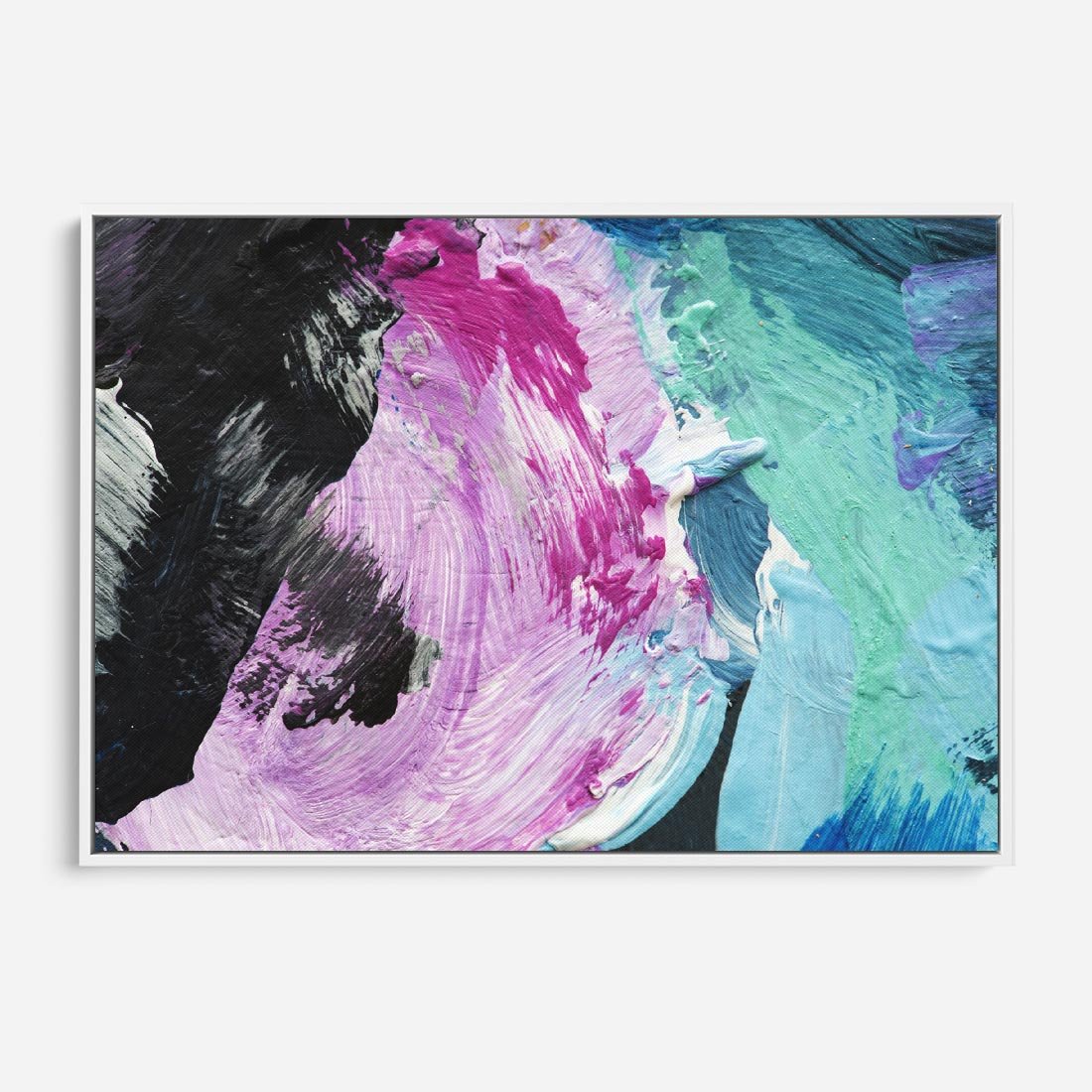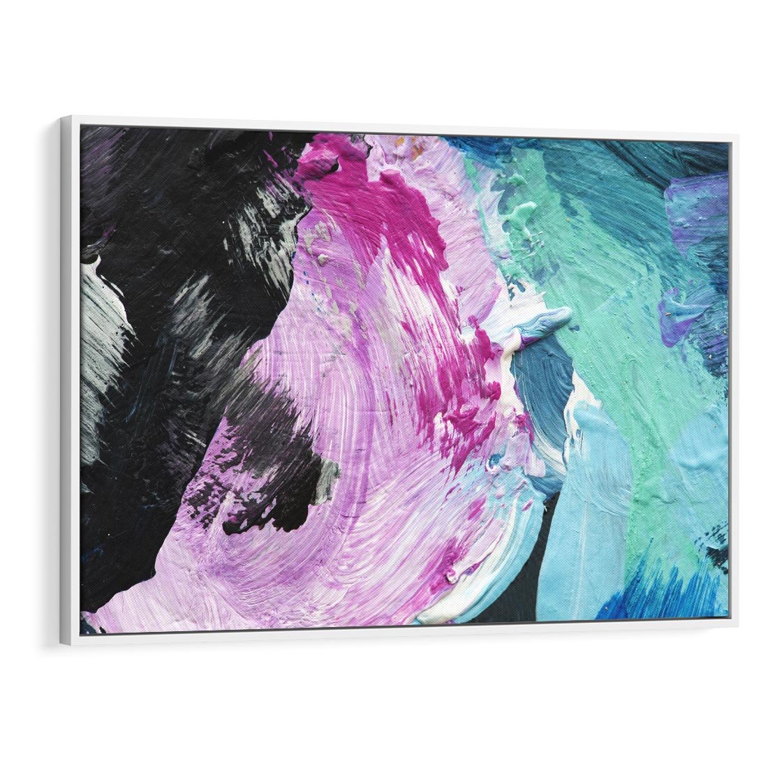 Obraz w ramie 100x70 - Kolorowy rój wyobraźni - rozlane kolorowe farby olejne, abstrakcja - rama biała