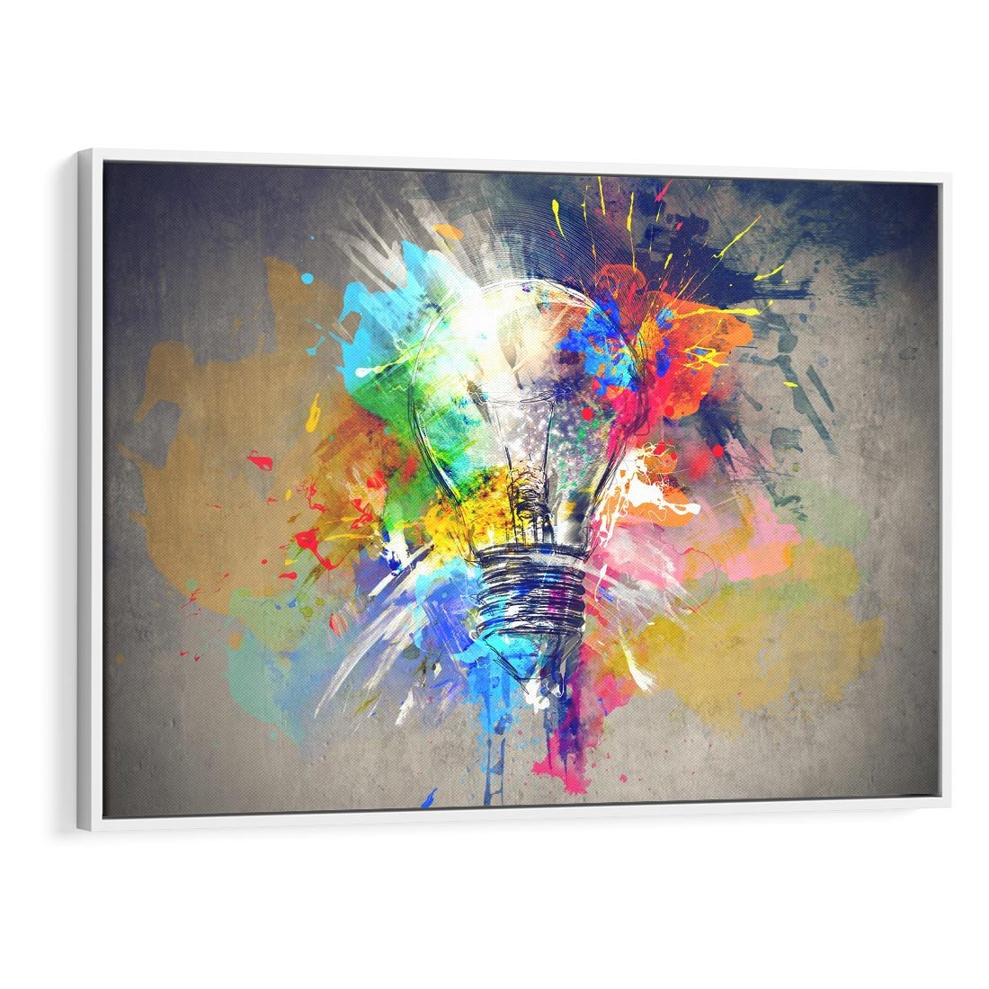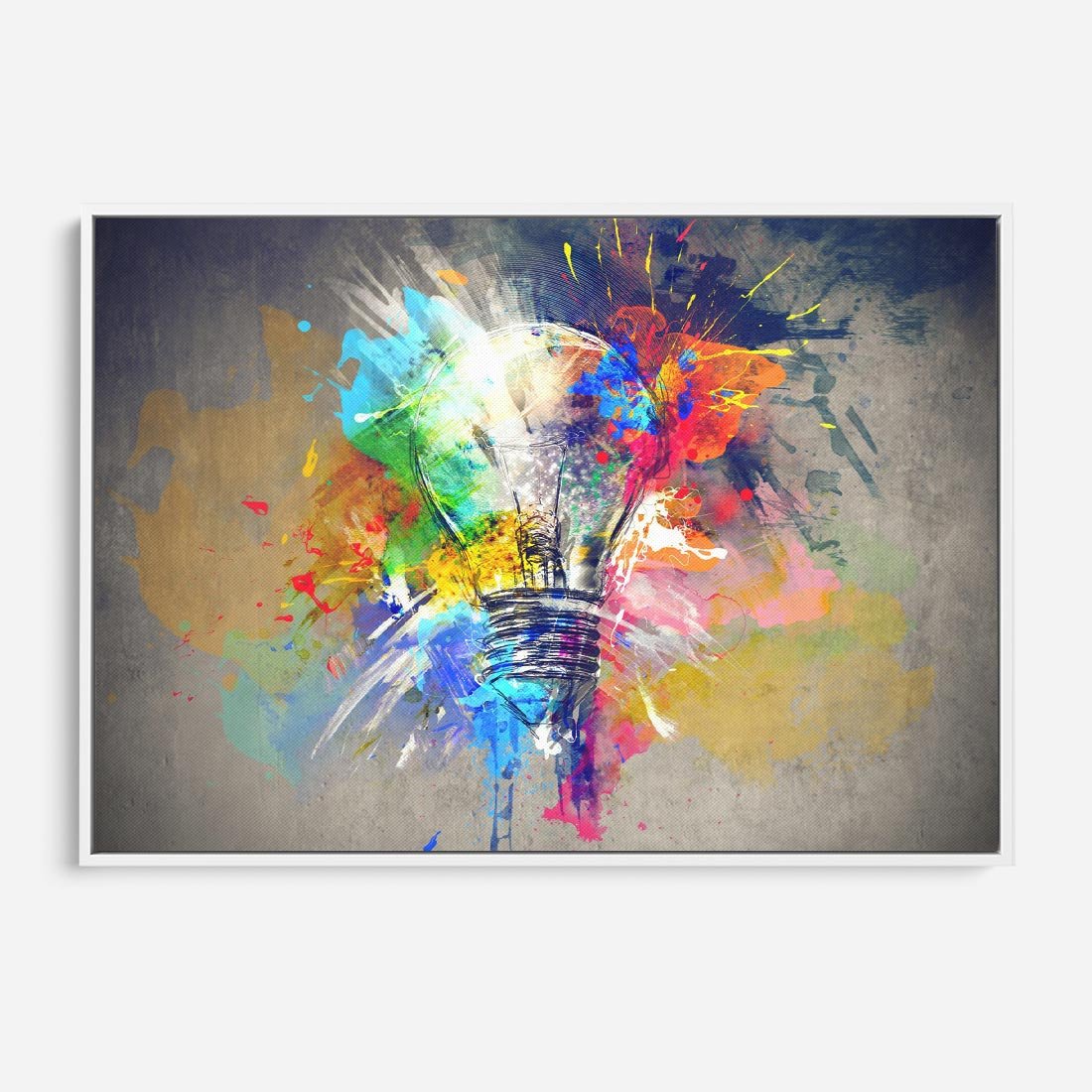 Obraz w ramie 100x70 - Kolory Kreatywnej Koncepcji - abstrakcyjna grafika, szkic żarówki - rama biała
