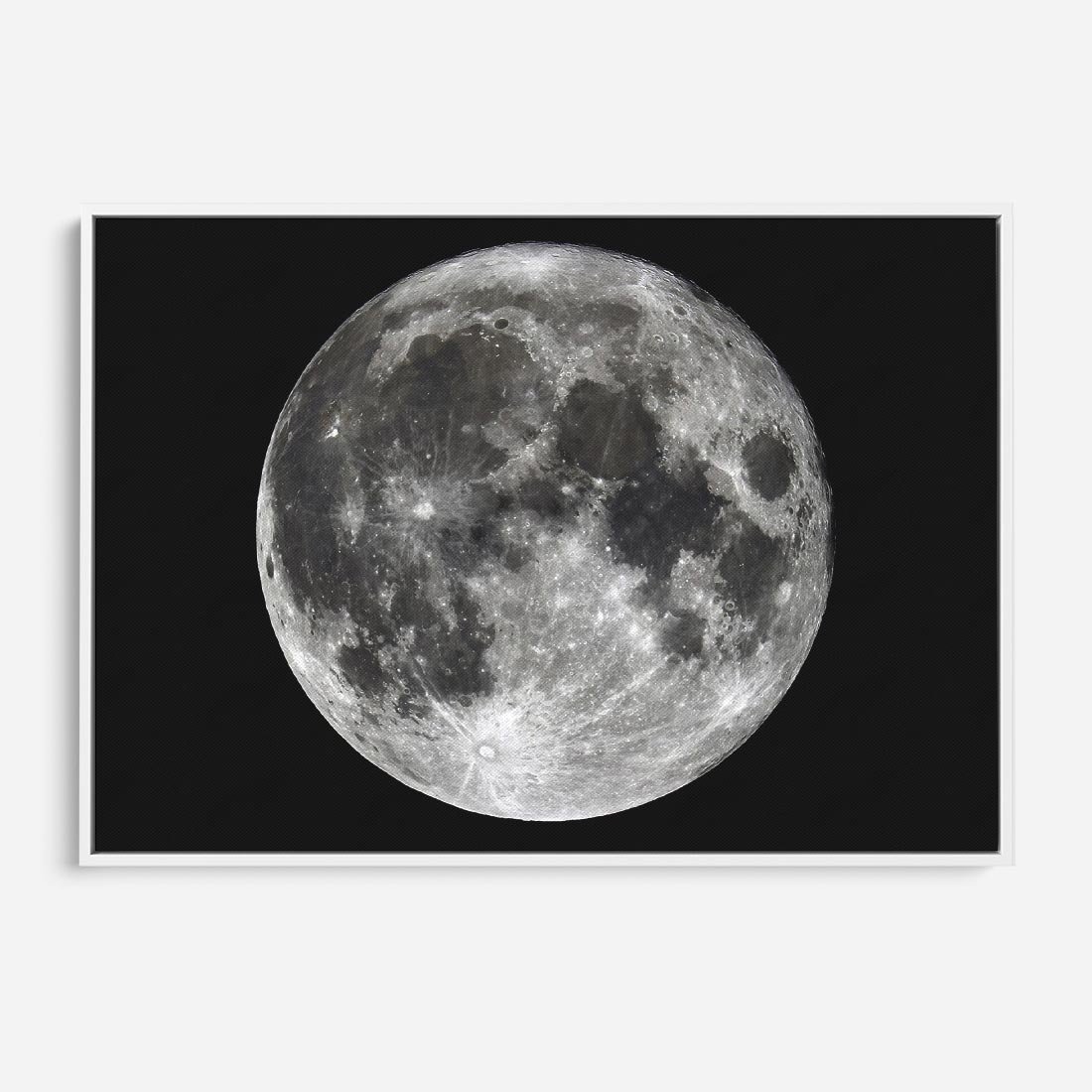 Obraz w ramie 100x70 - Księżycowa Aura - zdjęcie, ogromny księżyc na czarnym tle - rama biała