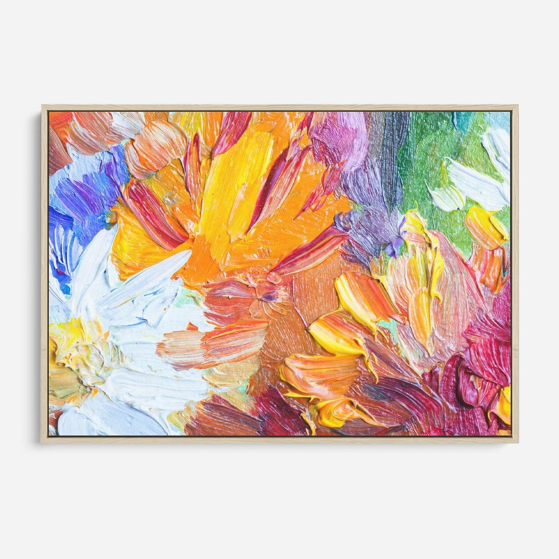 Obraz w ramie 100x70 - Kwiatowe Harmonie - zbliżenie na obraz olejny, gruba warstwa farby - rama drewno