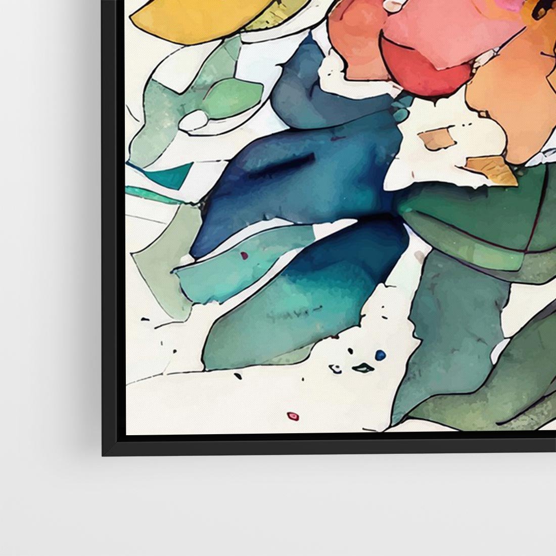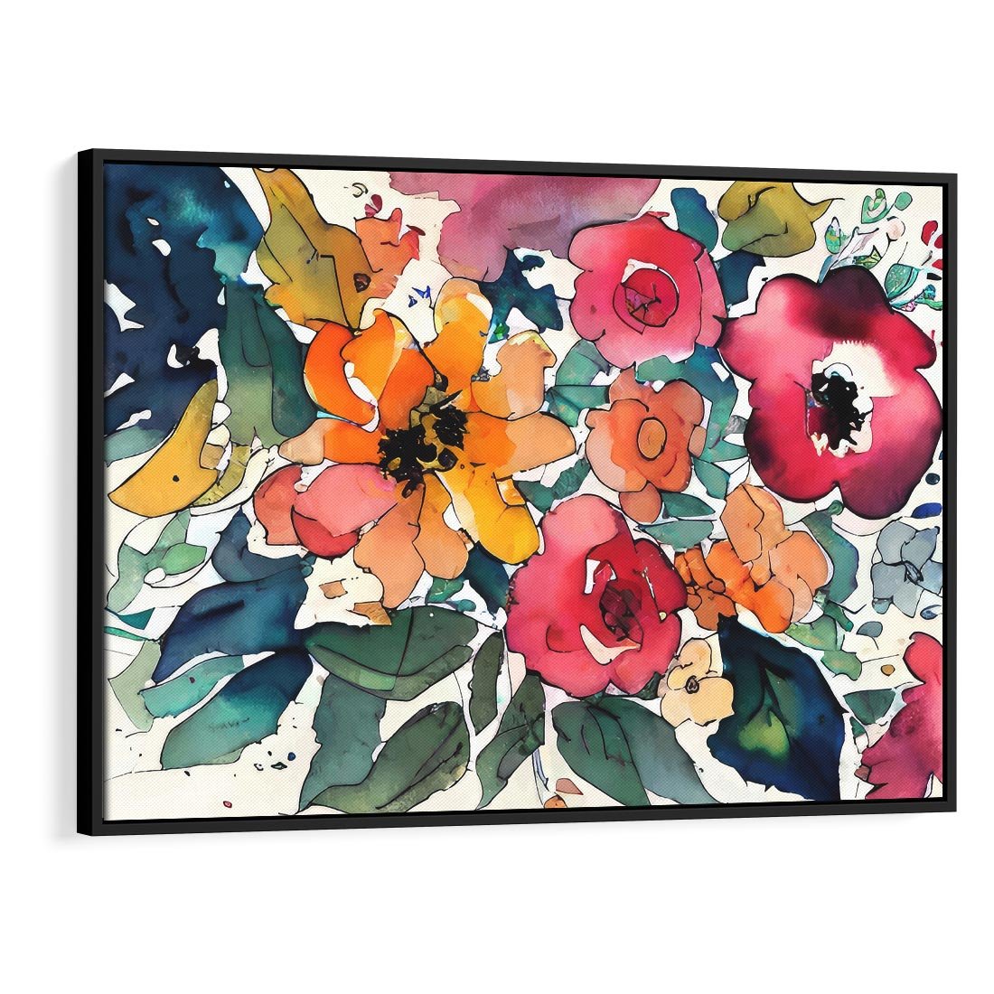 Obraz w ramie 100x70 - Kwiatowy Impuls Kolorów - abstrakcyjne kolorowe kwiaty, szkic - rama czarna