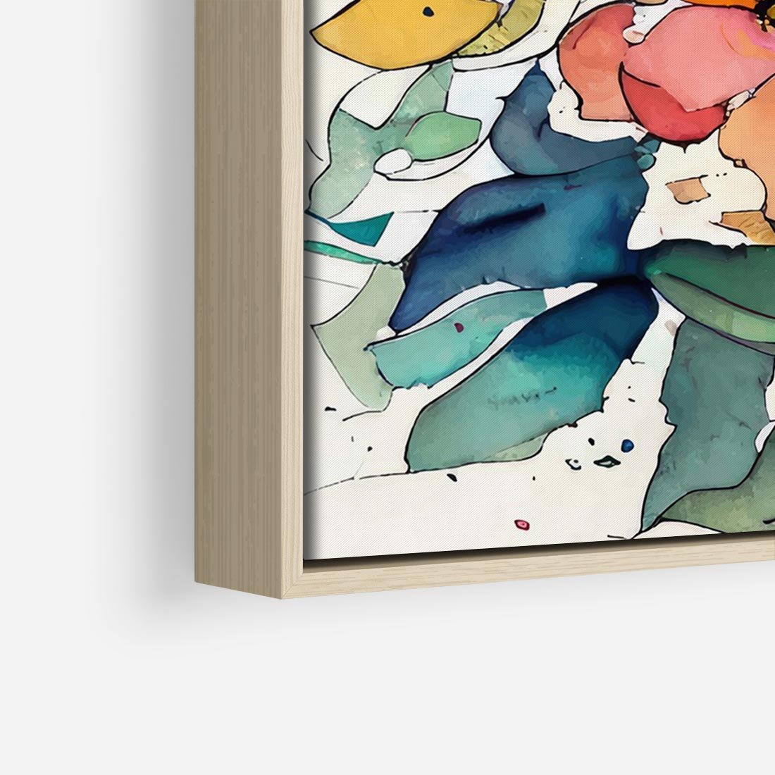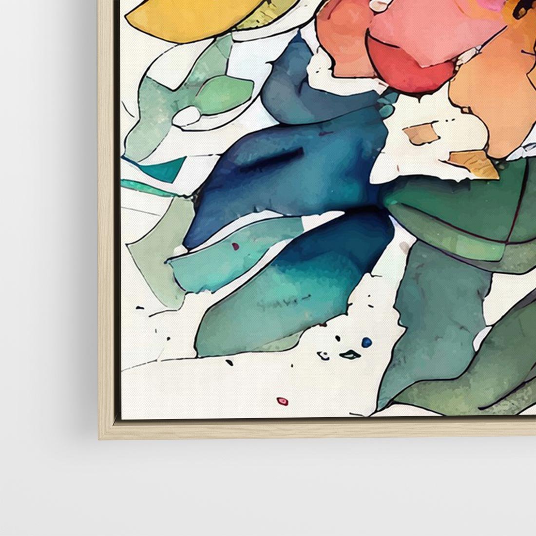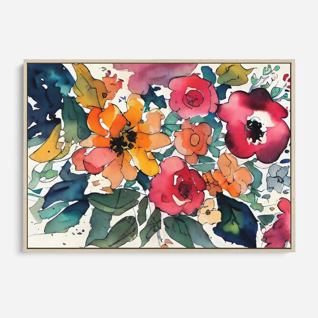 Obraz w ramie 100x70 - Kwiatowy Impuls Kolorów - abstrakcyjne kolorowe kwiaty, szkic - rama drewno