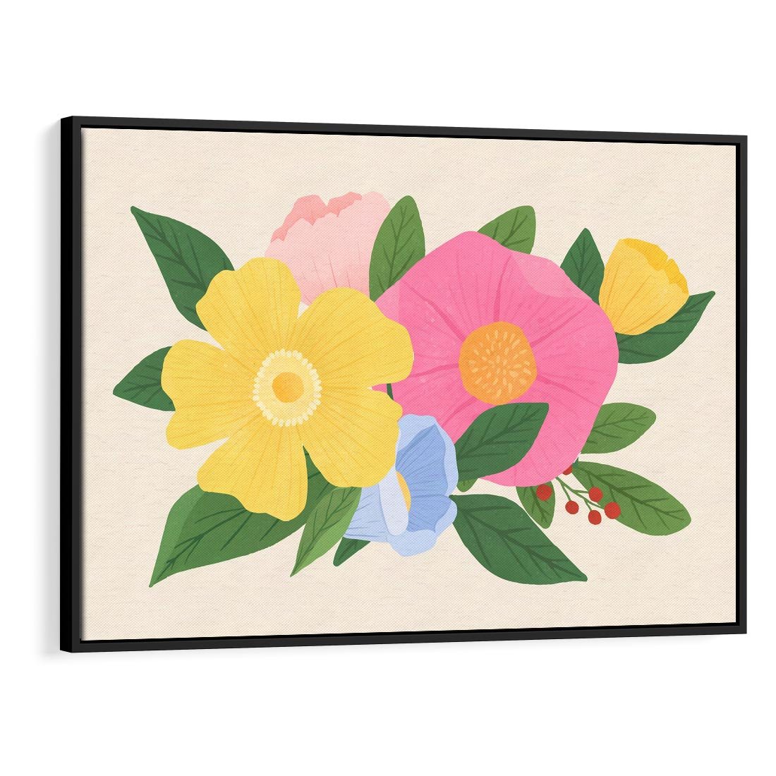 Obraz w ramie 100x70 - Kwiatowy Uśmiech - kwiaty, akwarela - rama czarna
