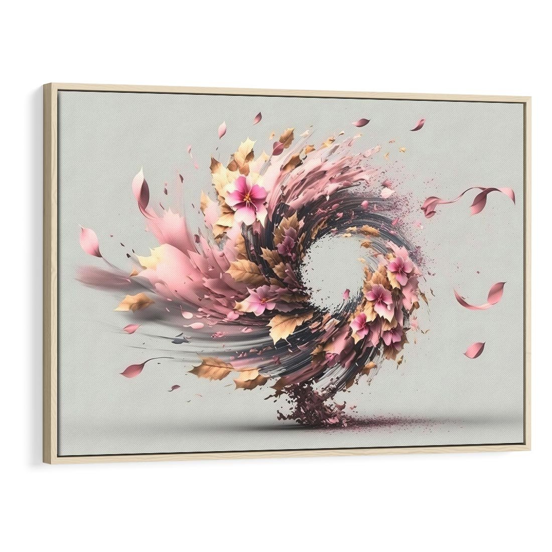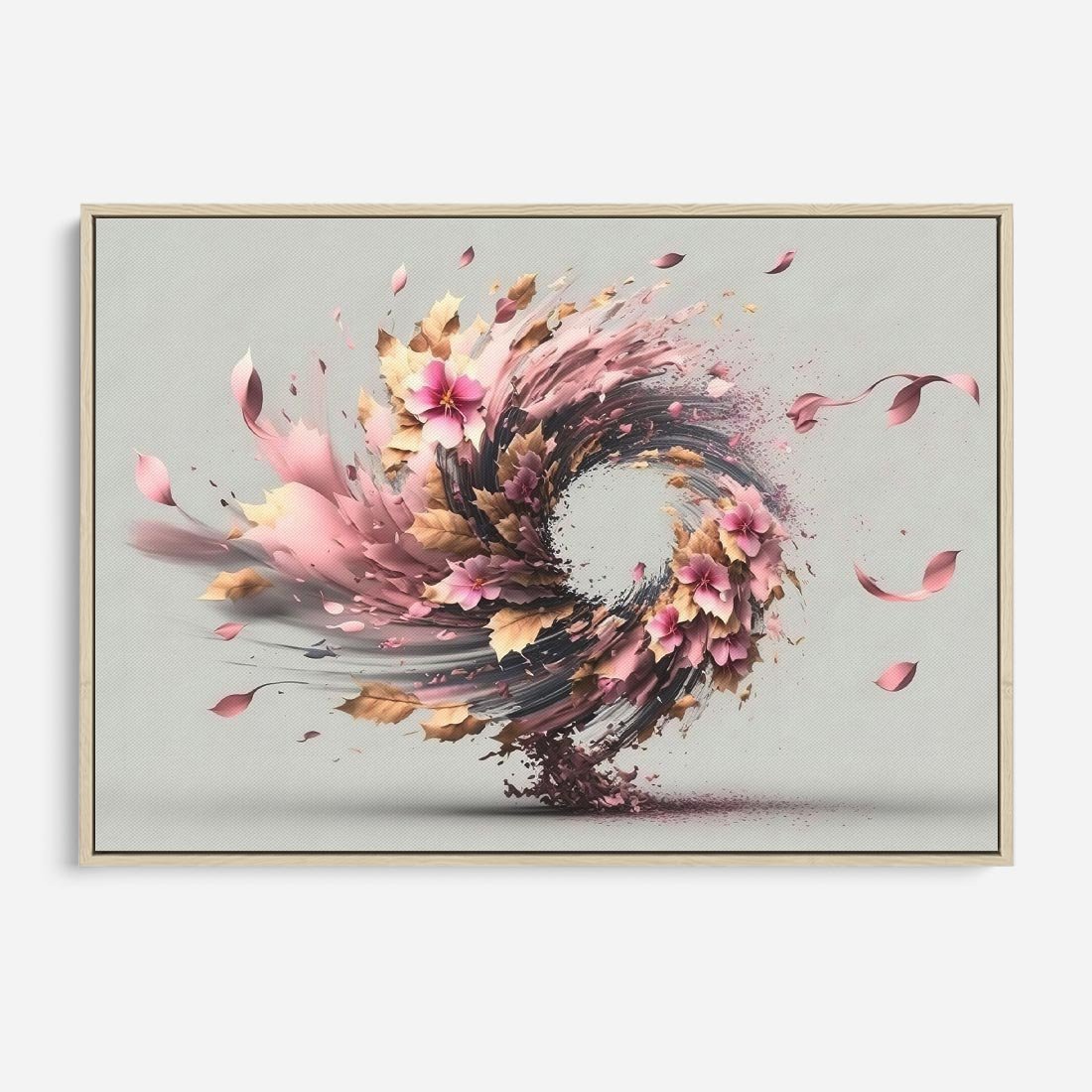 Obraz w ramie 100x70 - Kwiatowy Wir - nowoczesna grafika komputerowa, wir z kwiatów - rama drewno