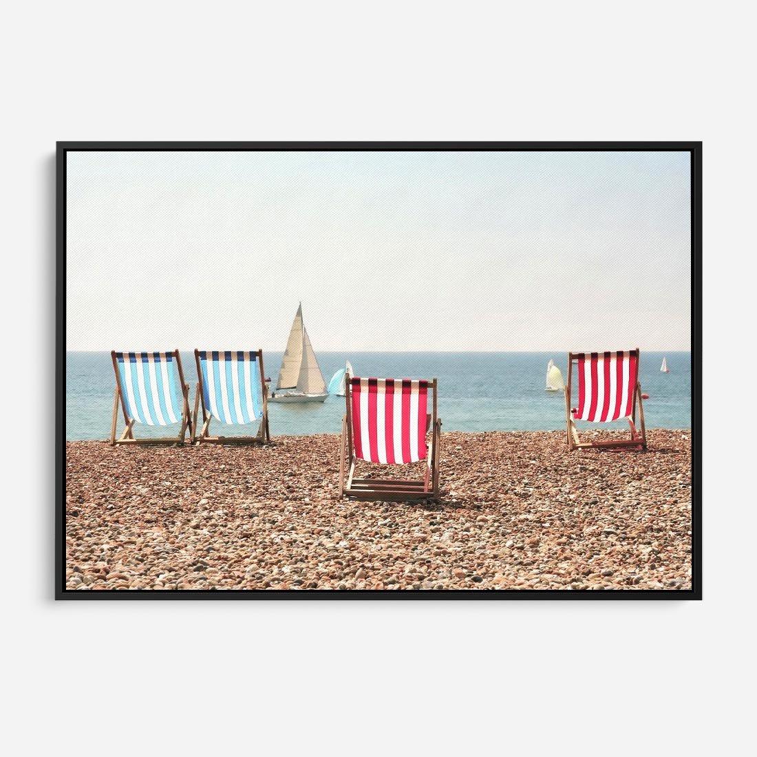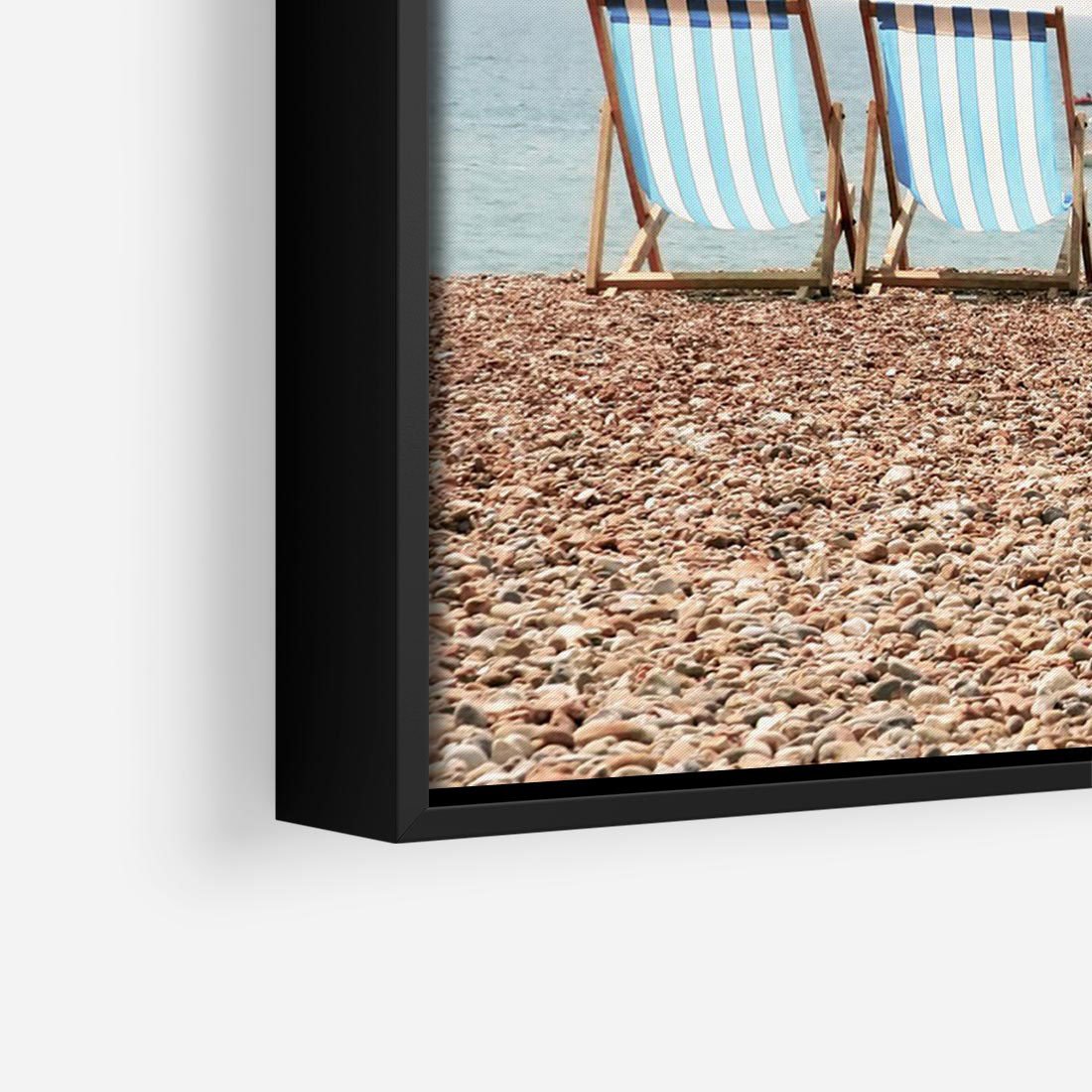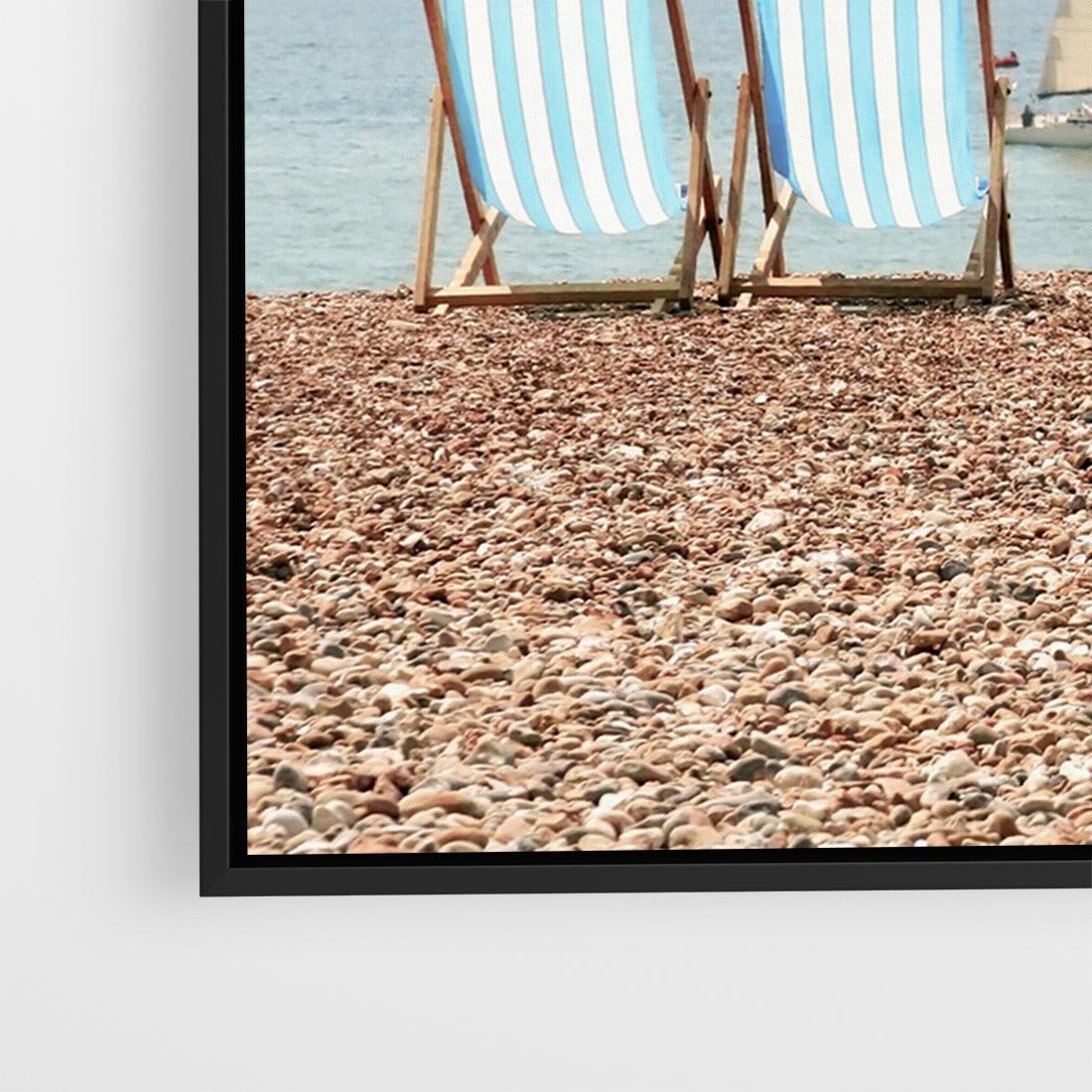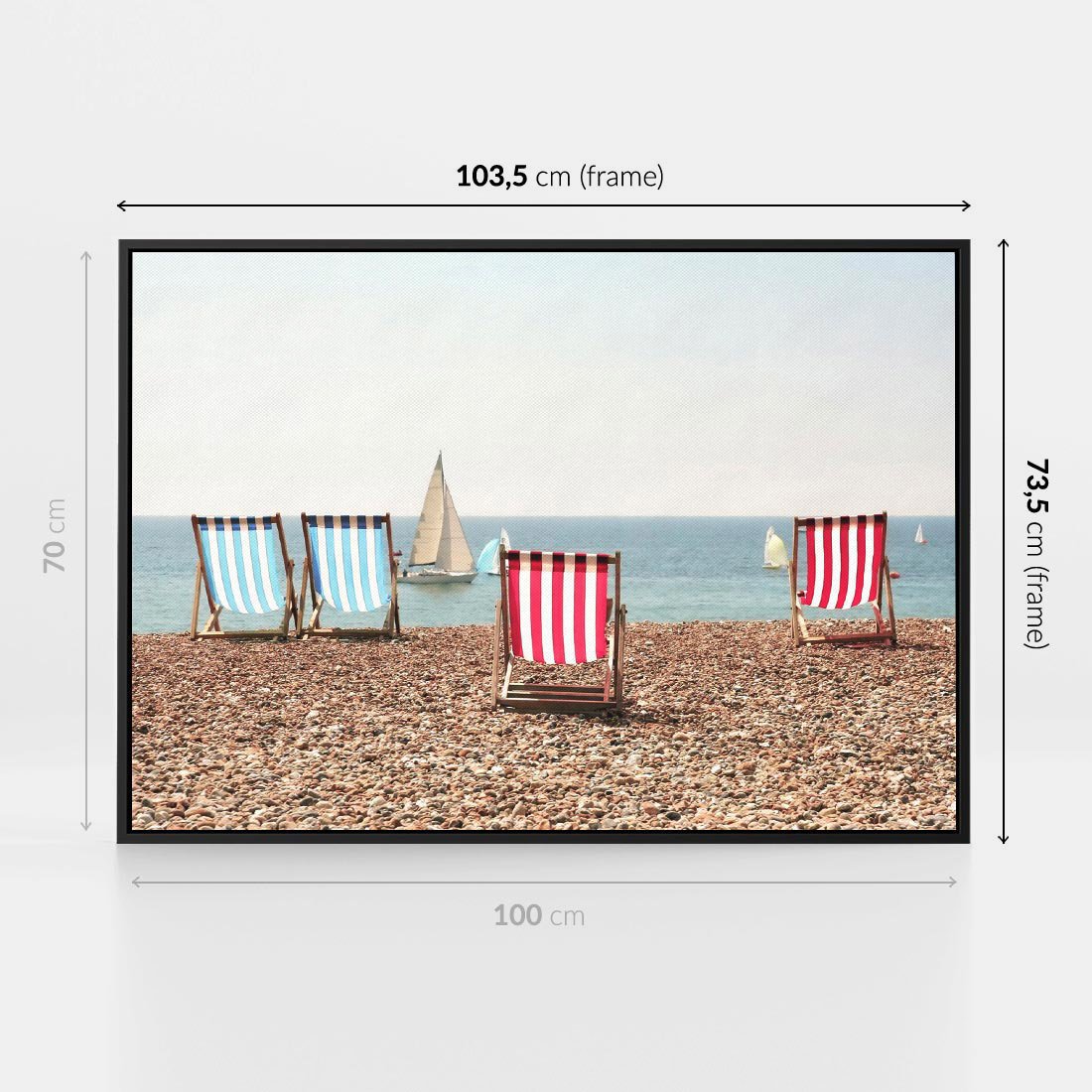Obraz w ramie 100x70 - Letnia retro bajka - fotografia, pasiaste leżaki - rama czarna