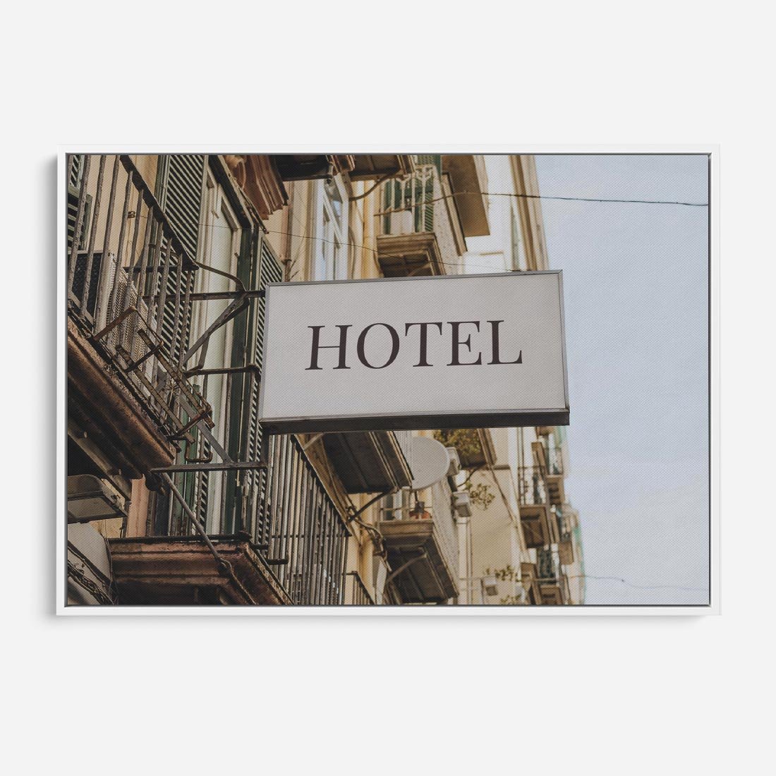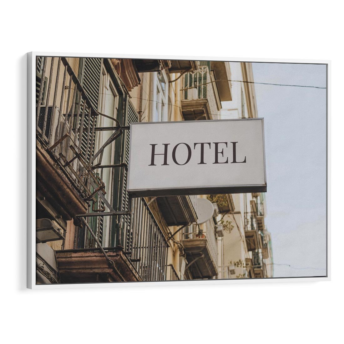 Obraz w ramie 100x70 - Magiczne Spacery - hotel, uliczka - rama biała
