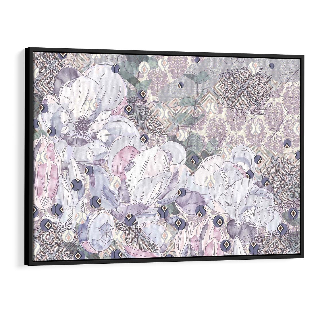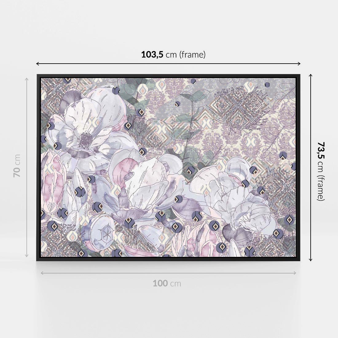 Obraz w ramie 100x70 - Malowane oddechy istnienia - pomieszane tekstury, kwiatowe elementy - rama czarna