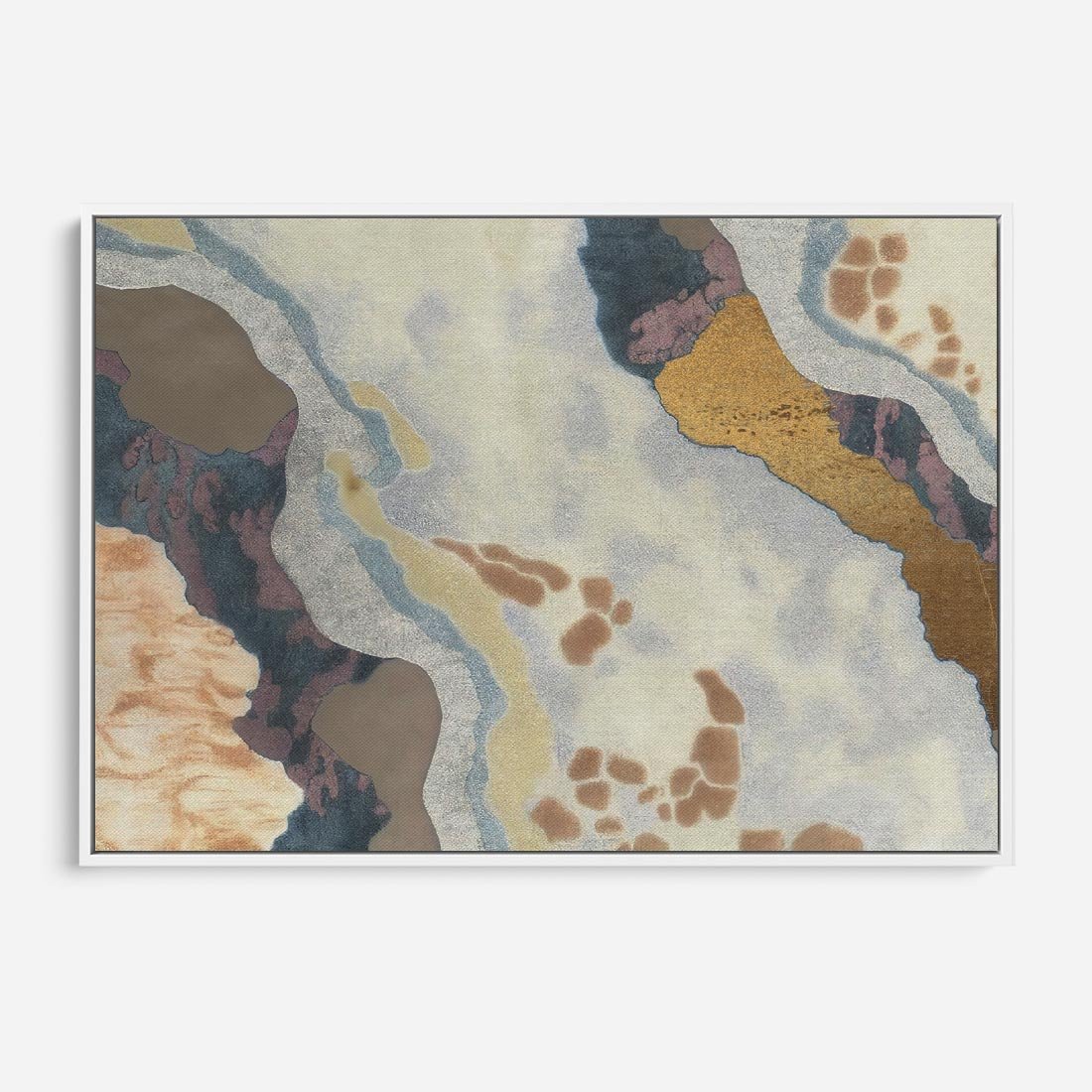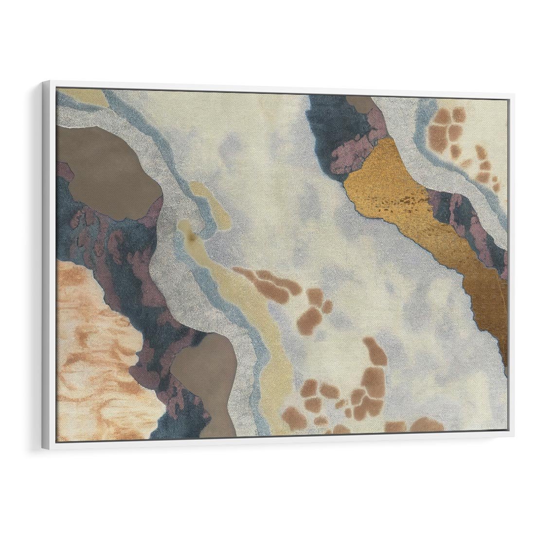 Obraz w ramie 100x70 - Melancholijne oddechy pędzla - abstrakcyjne formy, zgaszone kolory - rama biała