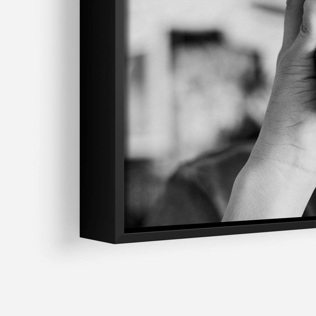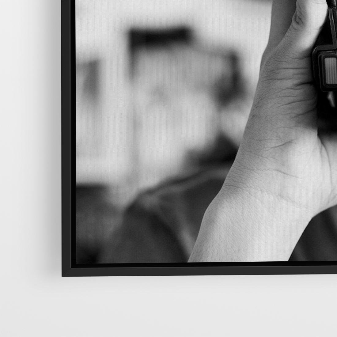 Obraz w ramie 100x70 - Mężczyzna za Aparatem - czarno białe zdjęcie, portret - rama czarna