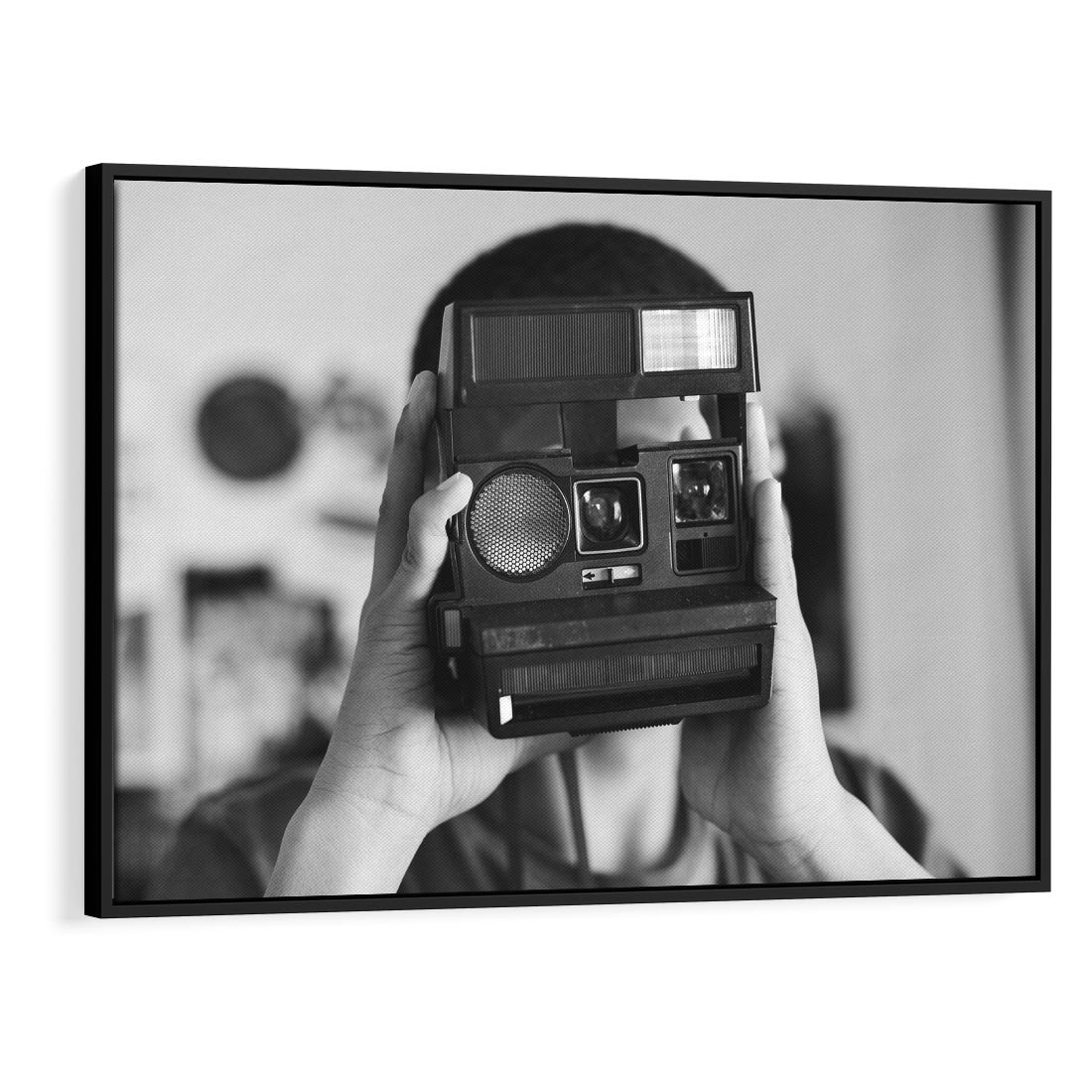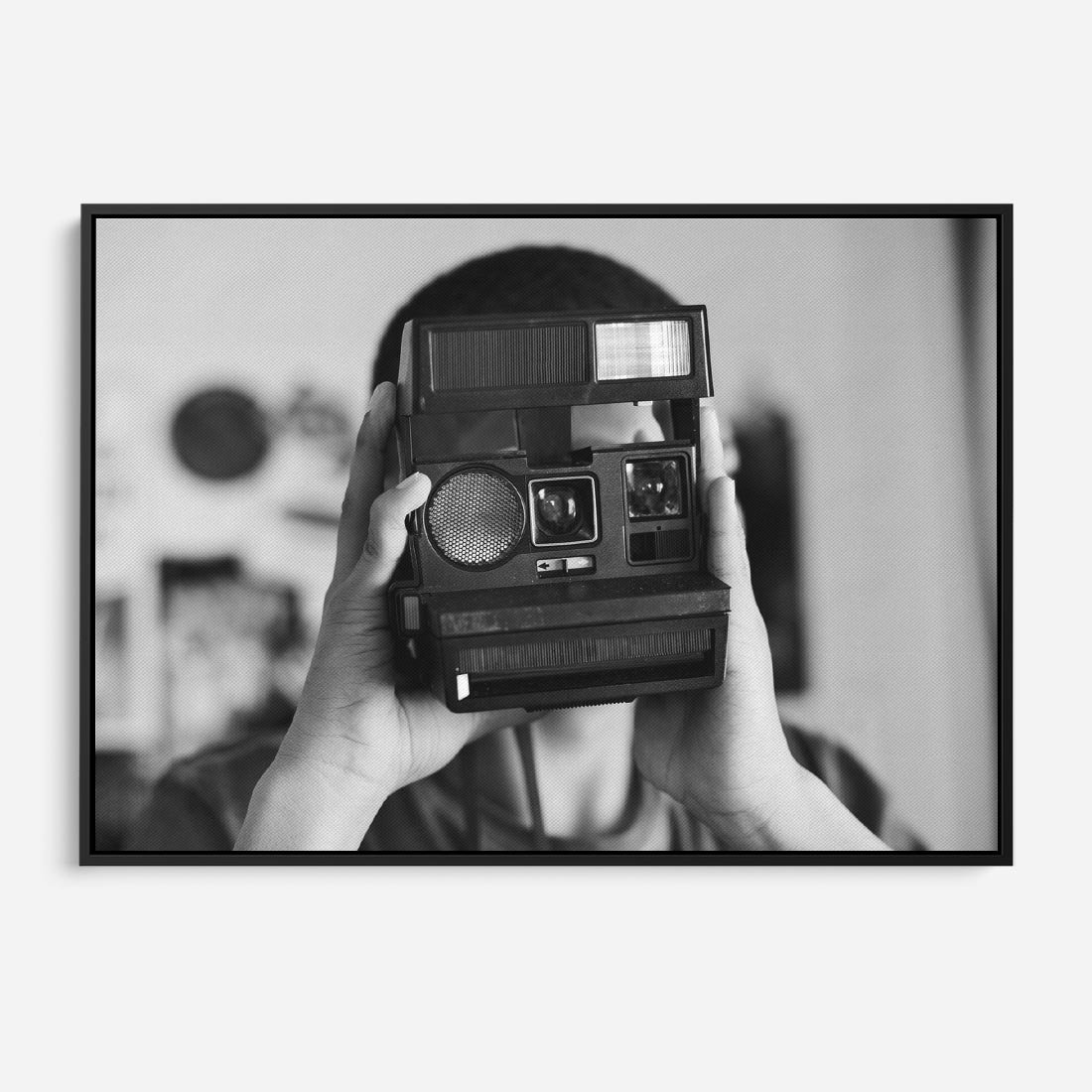 Czarno-biały portret przedstawia mężczyznę, który robi zdjęcie, używając polaroidu. Fotografia emanuje artystycznym wdziękiem, a klimat retro dodaje jej wyjątkowego charakteru. Ten obraz przenosi nas w świat sztuki i fotografii, wzbudzając zainteresowanie i ciekawość. Idealny dodatek do wnętrz, które pragną zachować artystyczną duszę.