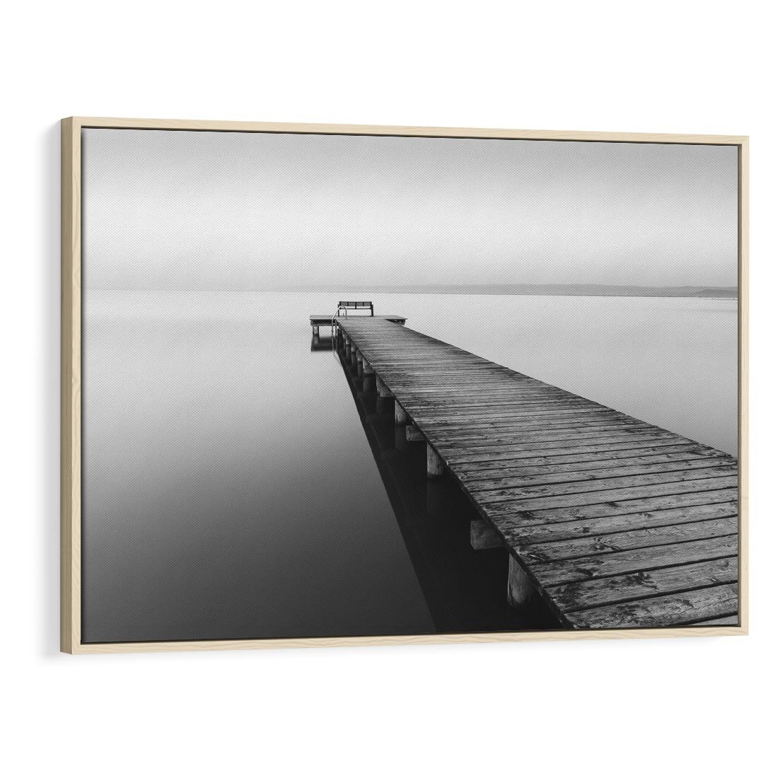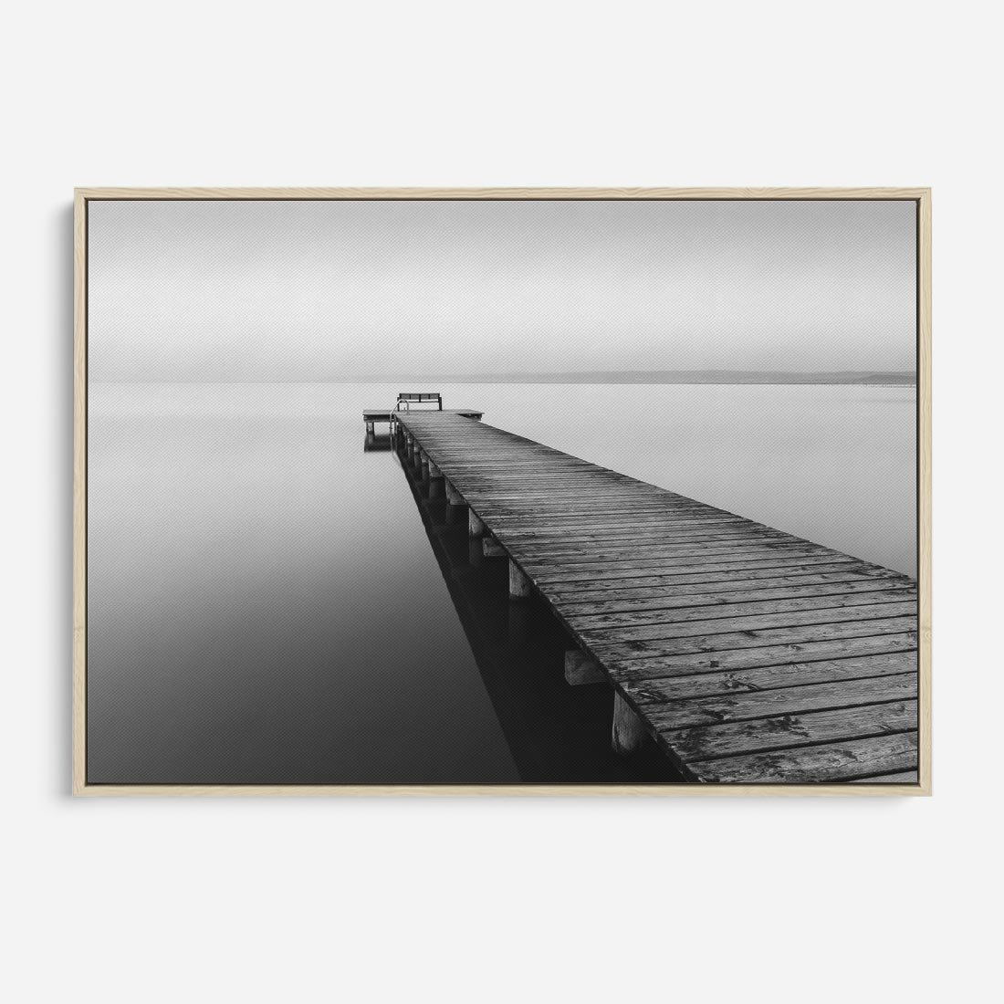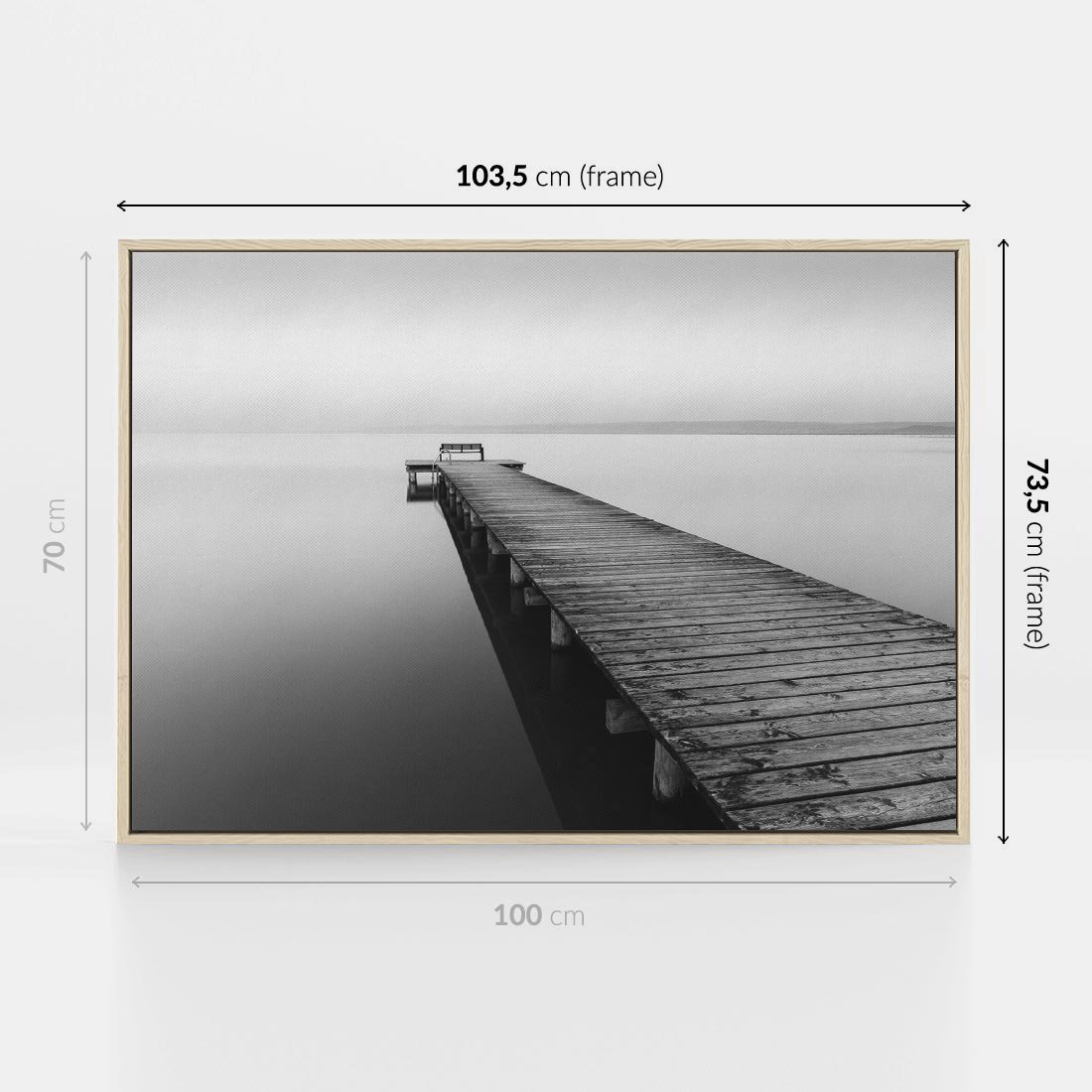 Obraz w ramie 100x70 - Mglista Perspektywa - czarno biała fotografia, drewniany pomost na jeziorze - rama drewno