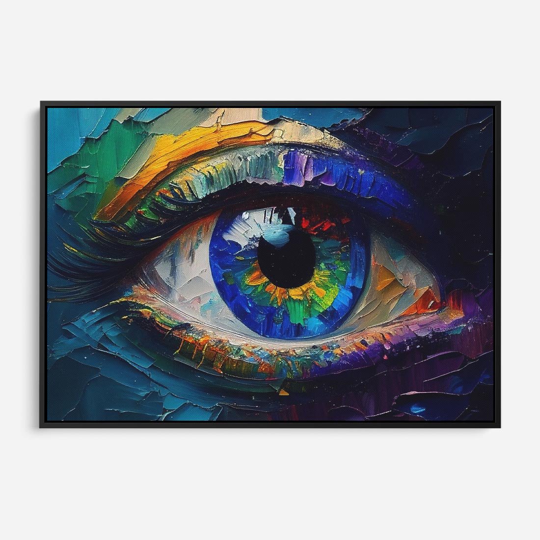 Obraz w ramie 100x70 - Mistyka Tęczowego Oka - oko, obraz olejny - rama czarna