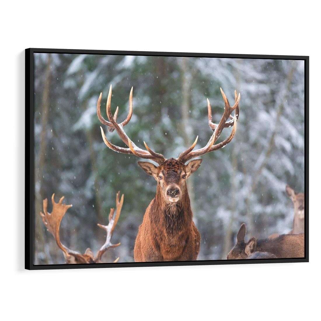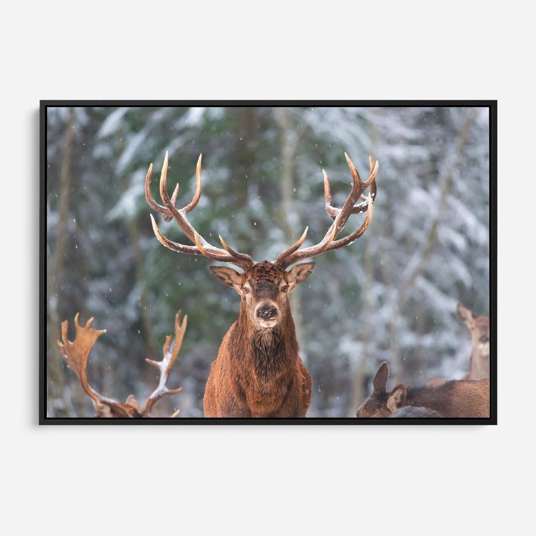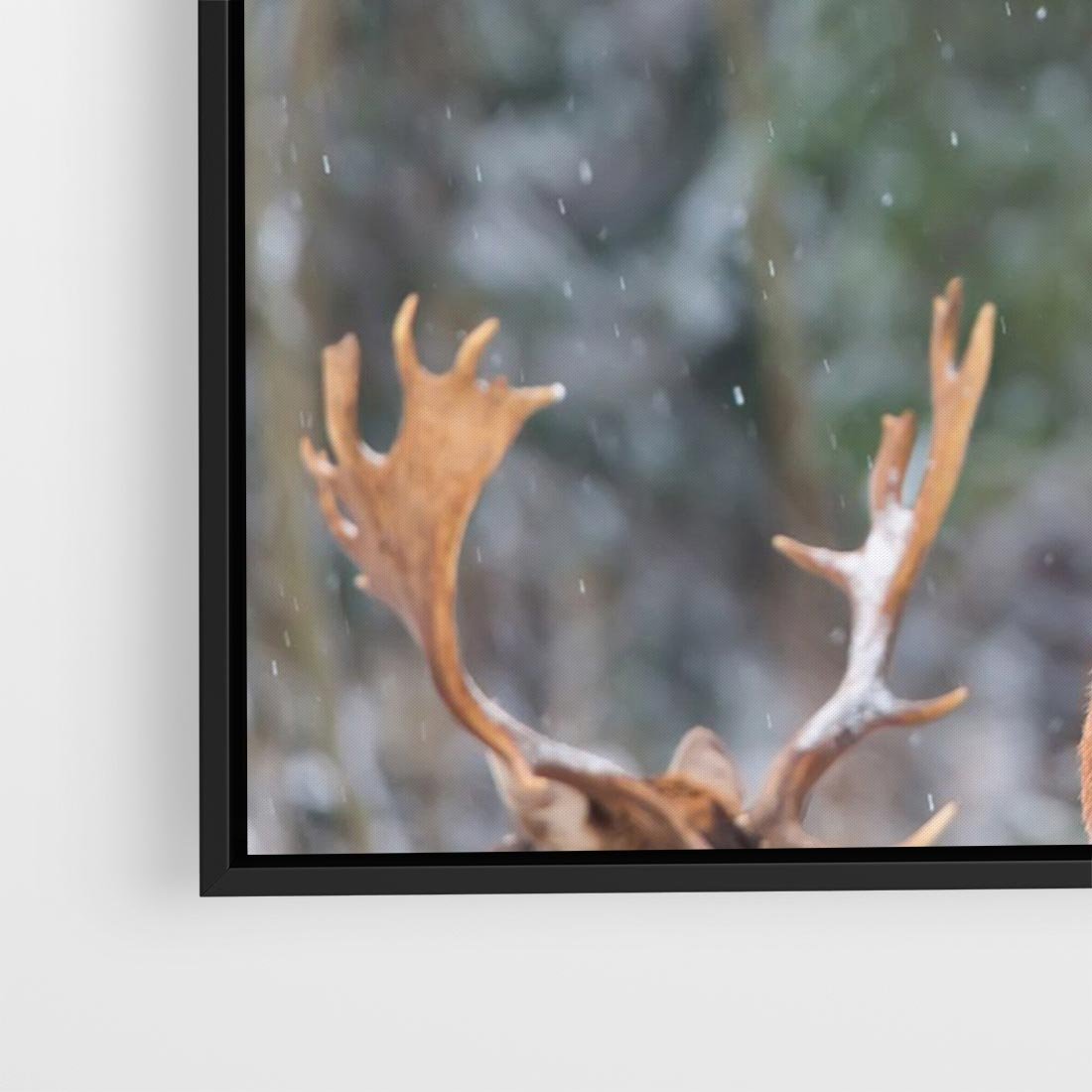 Obraz w ramie 100x70 - Monarcha Zimowej Dziczy - jeleń, zima - rama czarna