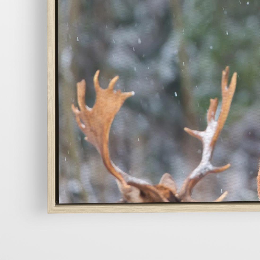 Obraz w ramie 100x70 - Monarcha Zimowej Dziczy - jeleń, zima - rama drewno