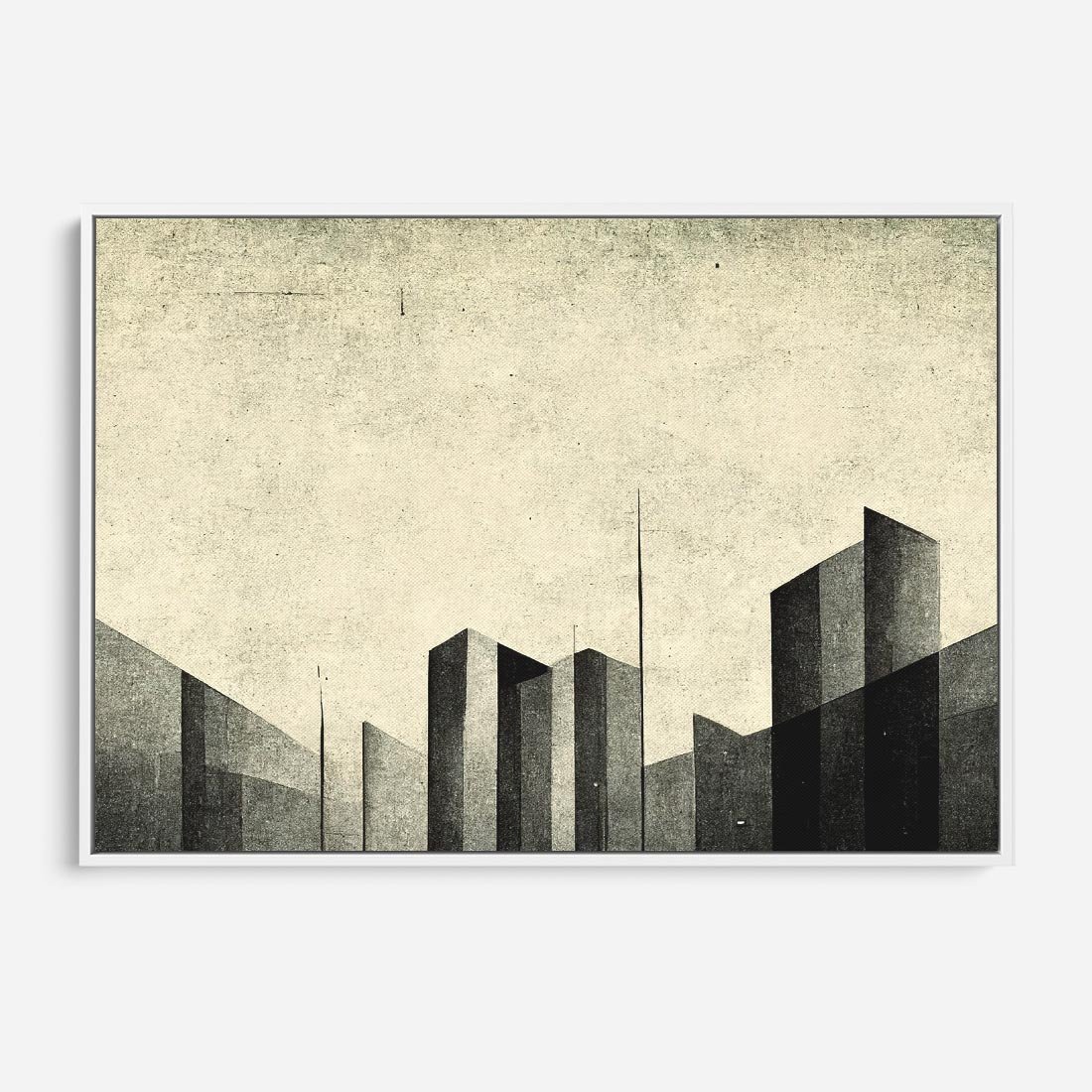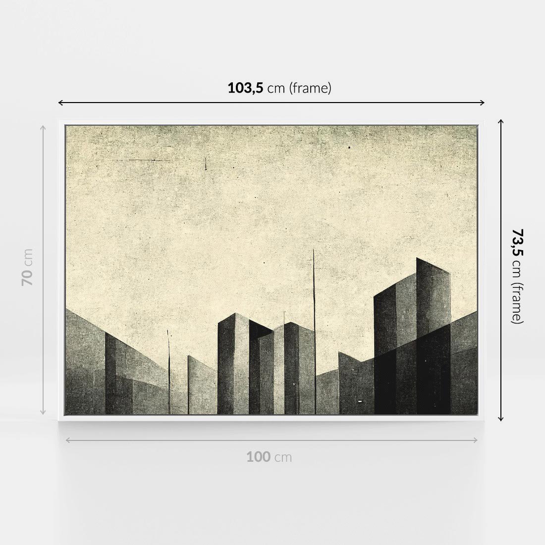 Obraz w ramie 100x70 - Mroczne Wieżowce - postarzana grafika, perspektywa budynków wieżowców - rama biała
