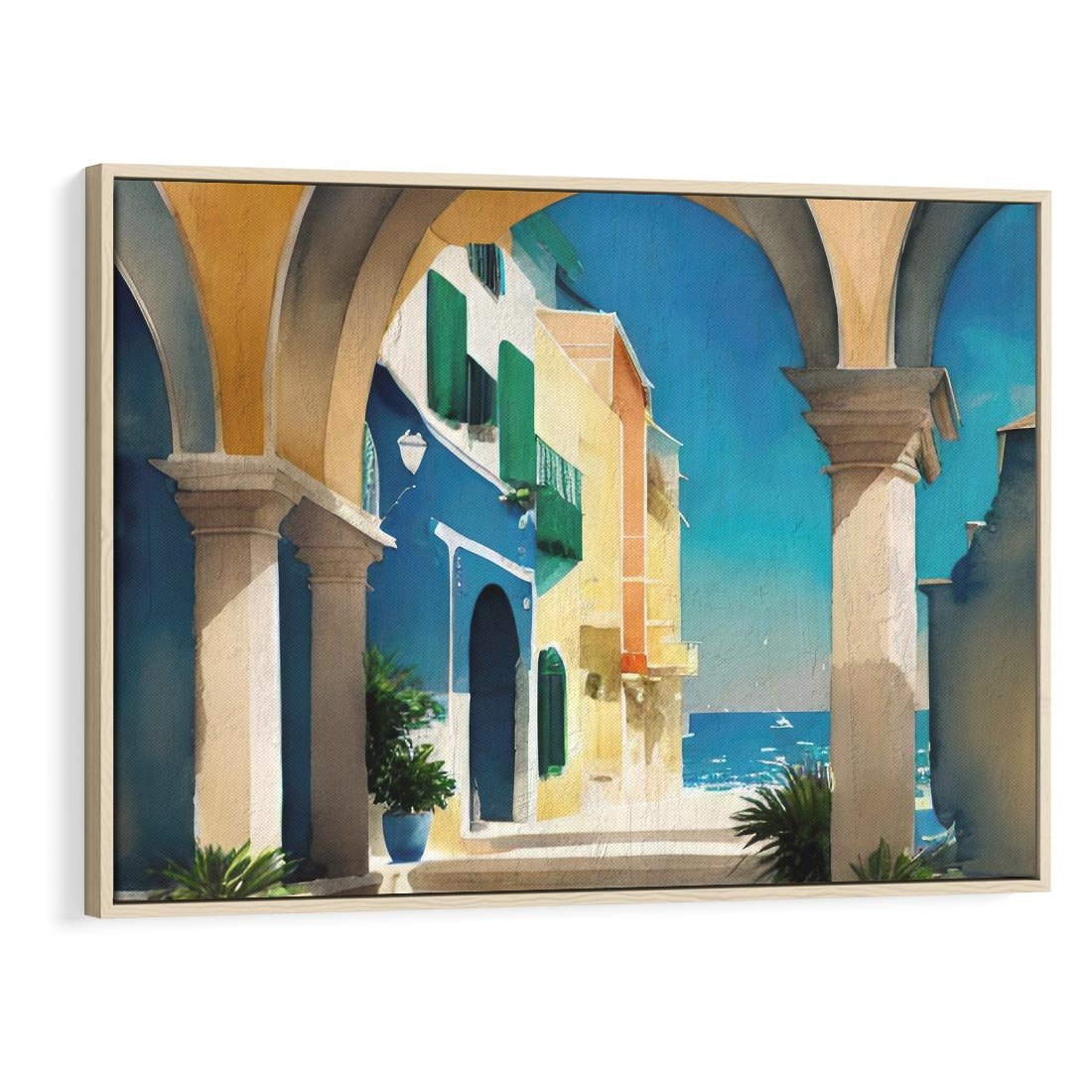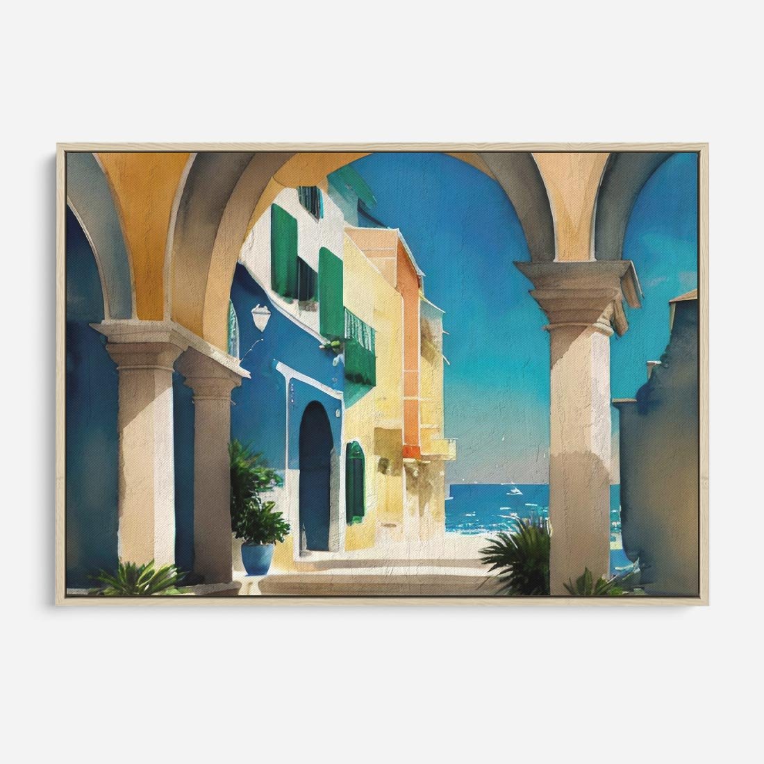 Obraz w ramie 100x70 - Nadmorskie Łuki - akwarela, śródziemnomorski klimat - rama drewno