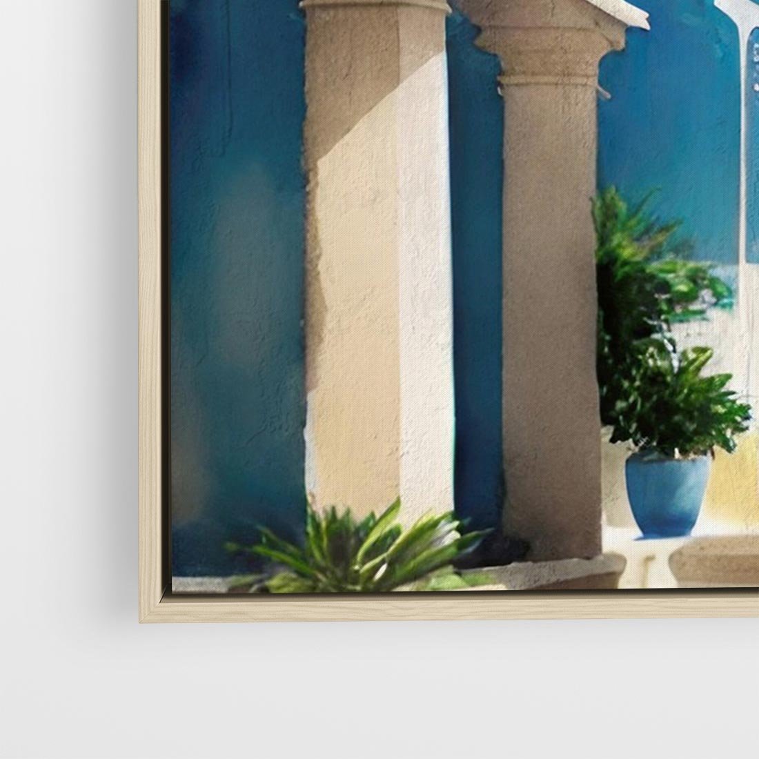 Ta akwarela przenosi nas do urokliwego śródziemnomorskiego klimatu. Na obrazie widzimy typową architekturę tego regionu, z charakterystycznymi budynkami, łukami i skomplikowanymi detalami. W tle rozciąga się piękne morze, tworząc malowniczy pejzaż. Technika akwareli nadaje temu obrazowi delikatność i pastelowe odcienie. To dzieło sztuki doskonale oddaje urok i spokój tego regionu, idealnie nadając się jako dekoracja wnętrza, które pragnie przenieść atmosferę śródziemnomorskiego krajobrazu do swojego otoczenia.