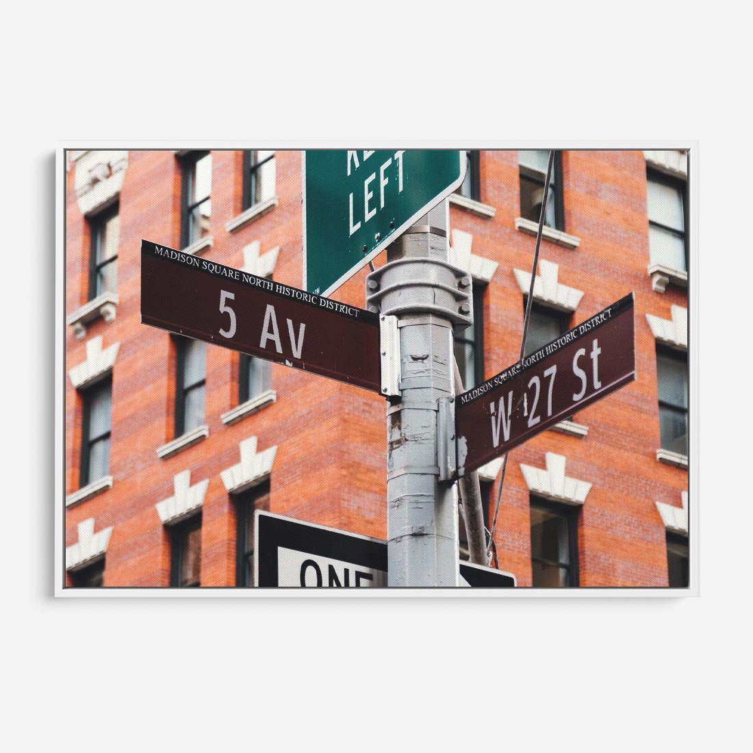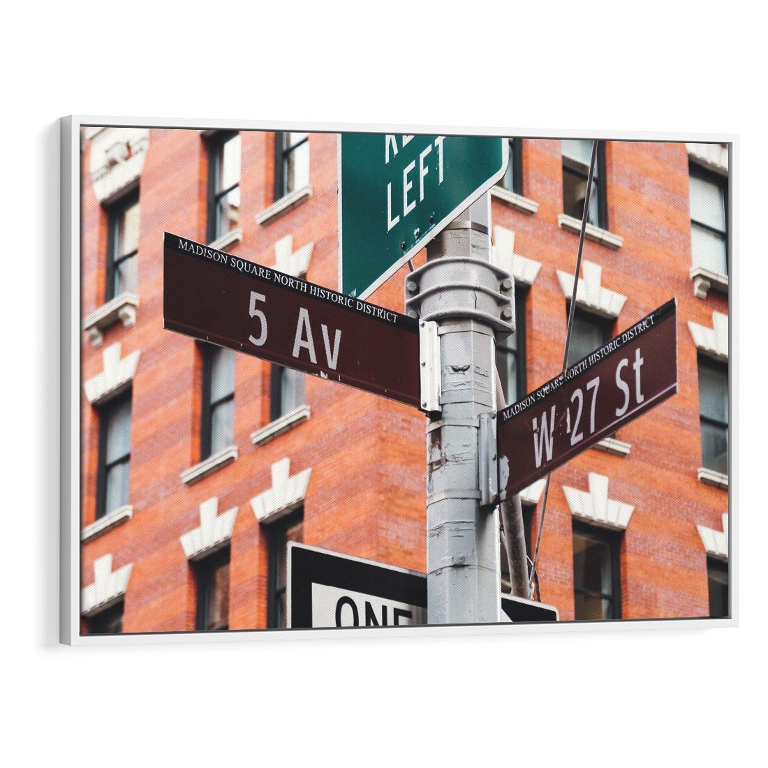 Obraz w ramie 100x70 - Namiastka wielkiego miasta - Nowy Jork, drogowskaz - rama biała