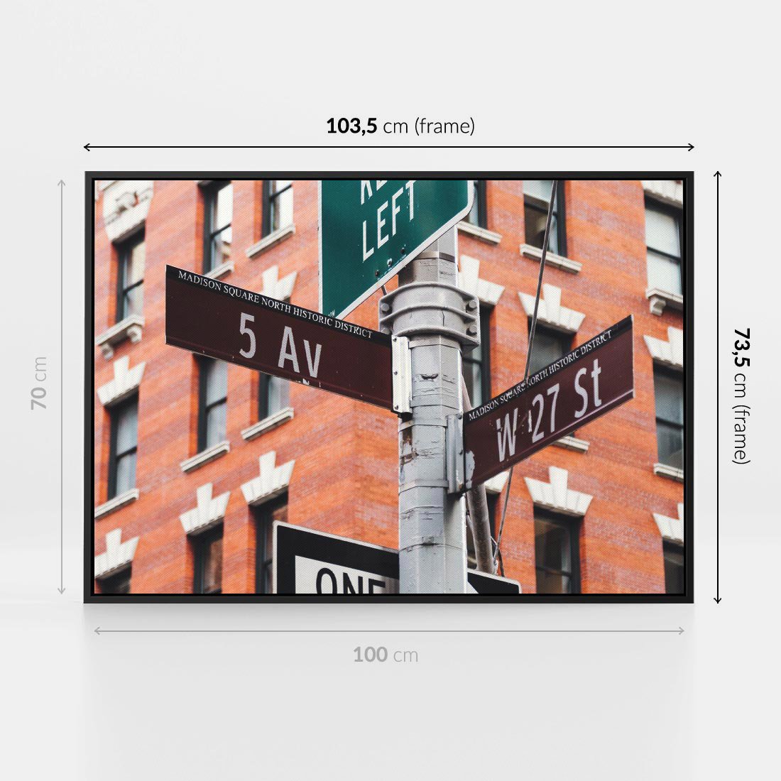 Obraz w ramie 100x70 - Namiastka wielkiego miasta - Nowy Jork, drogowskaz - rama czarna