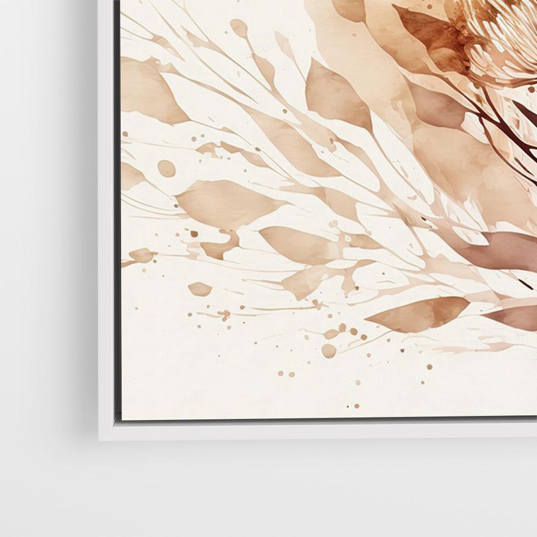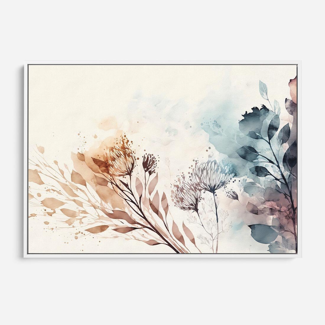 Obraz w ramie 100x70 - Nostalgiczne tańce pędzla - akwarelowe kwiaty, gałęzie - rama biała