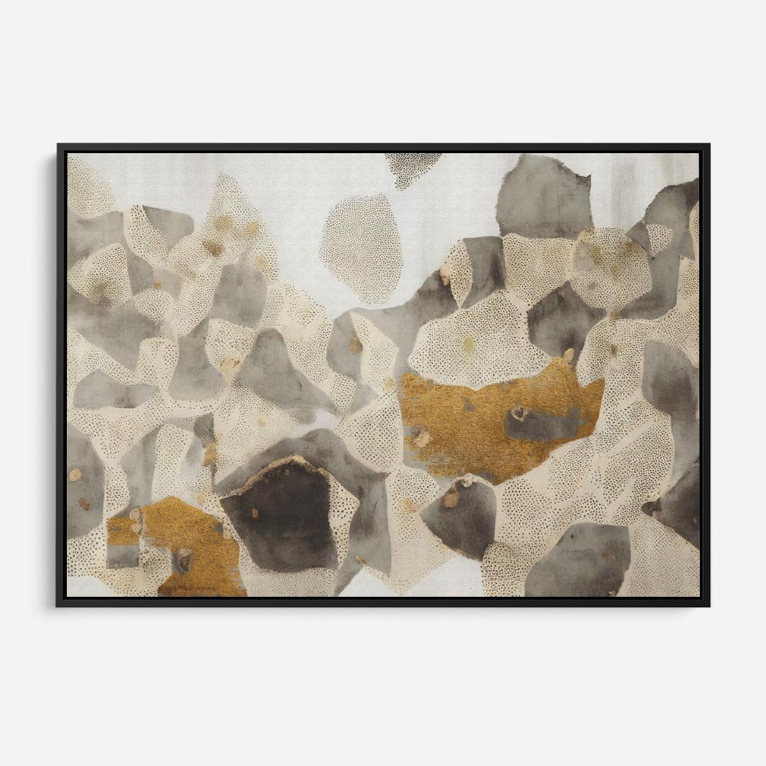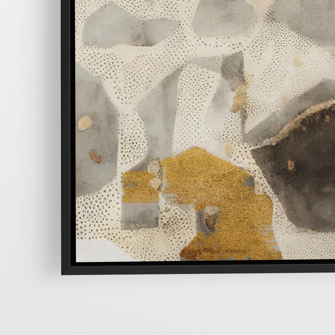 Obraz w ramie 100x70 - Nowoczesne Złoto i Szarość - plamy, złoto - rama czarna