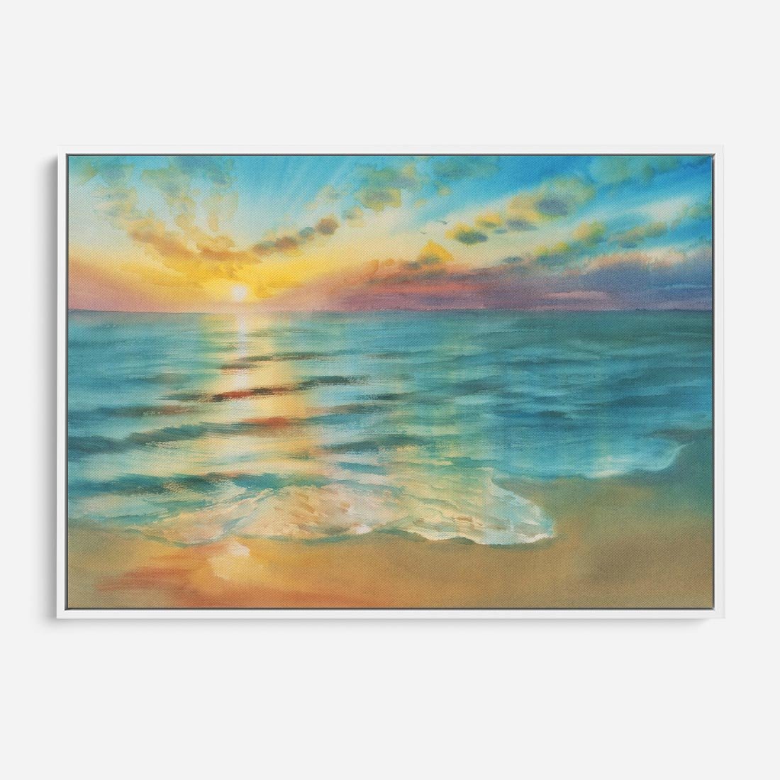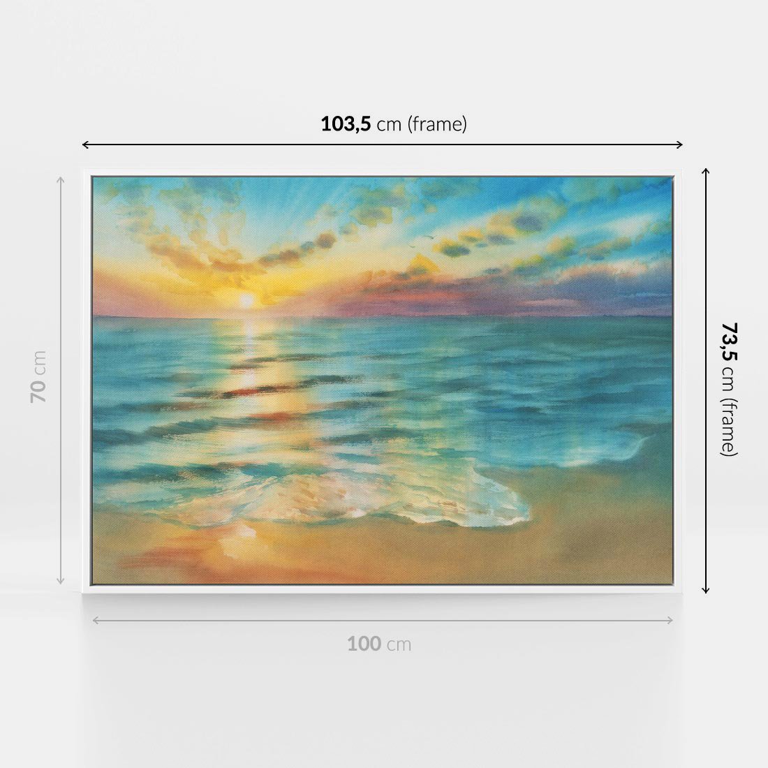 Obraz w ramie 100x70 - Objawienie Fioletowego Świtu - fioletowy wschód słońca, słońce wschodzi nad morzem - rama biała