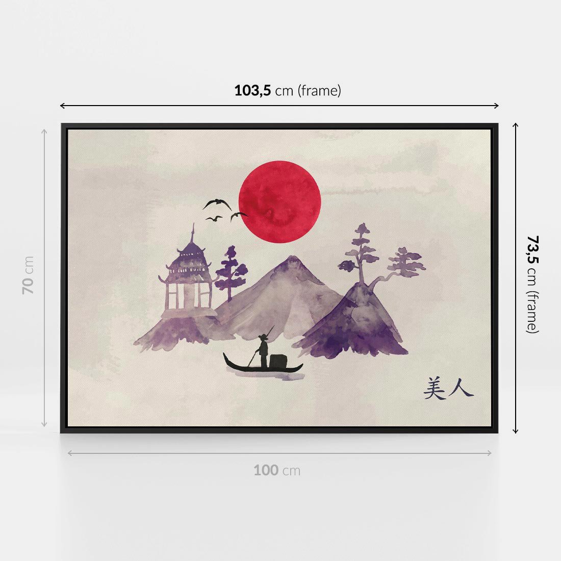 Obraz w ramie 100x70 - Odbicie Słońca - japońska sztuka, akwarela - rama czarna