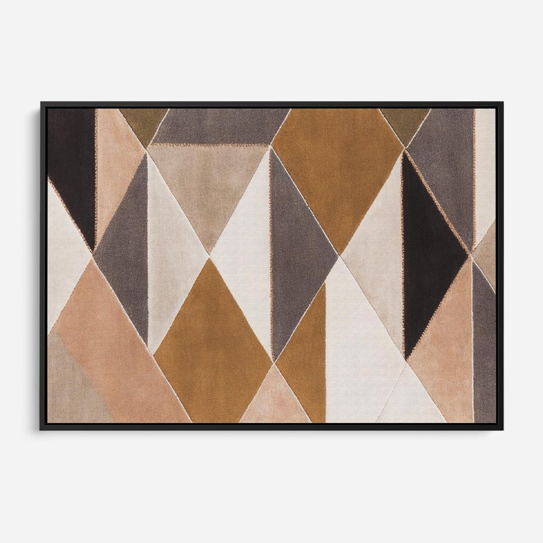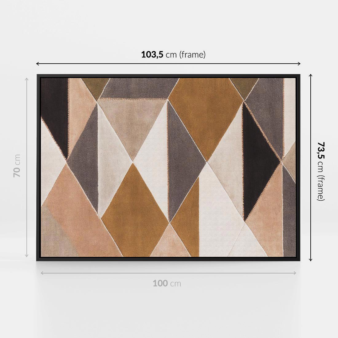 Obraz w ramie 100x70 - Odblaski niespełnionych marzeń - kompozycja z trójkątów, mix kolorów ziemi - rama czarna