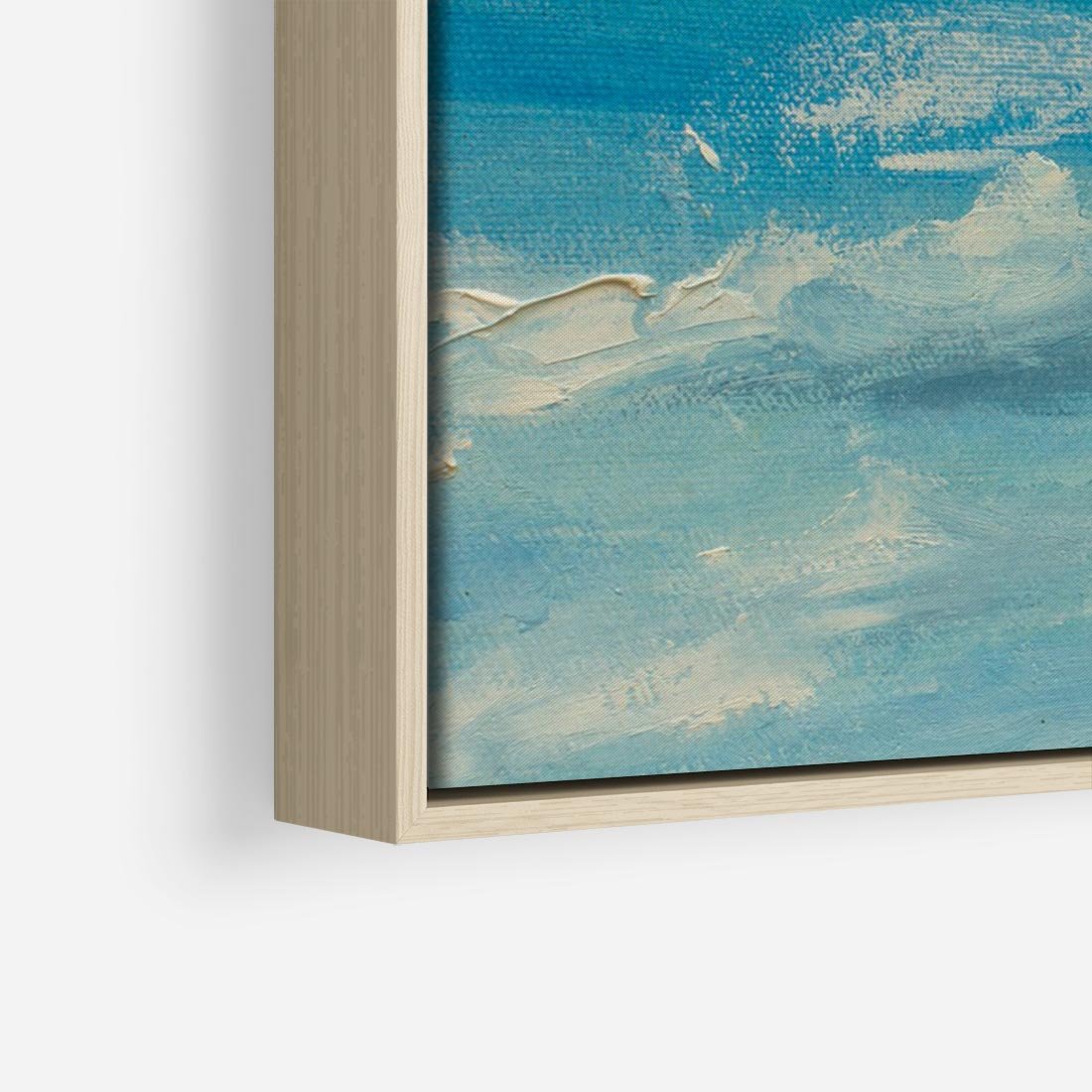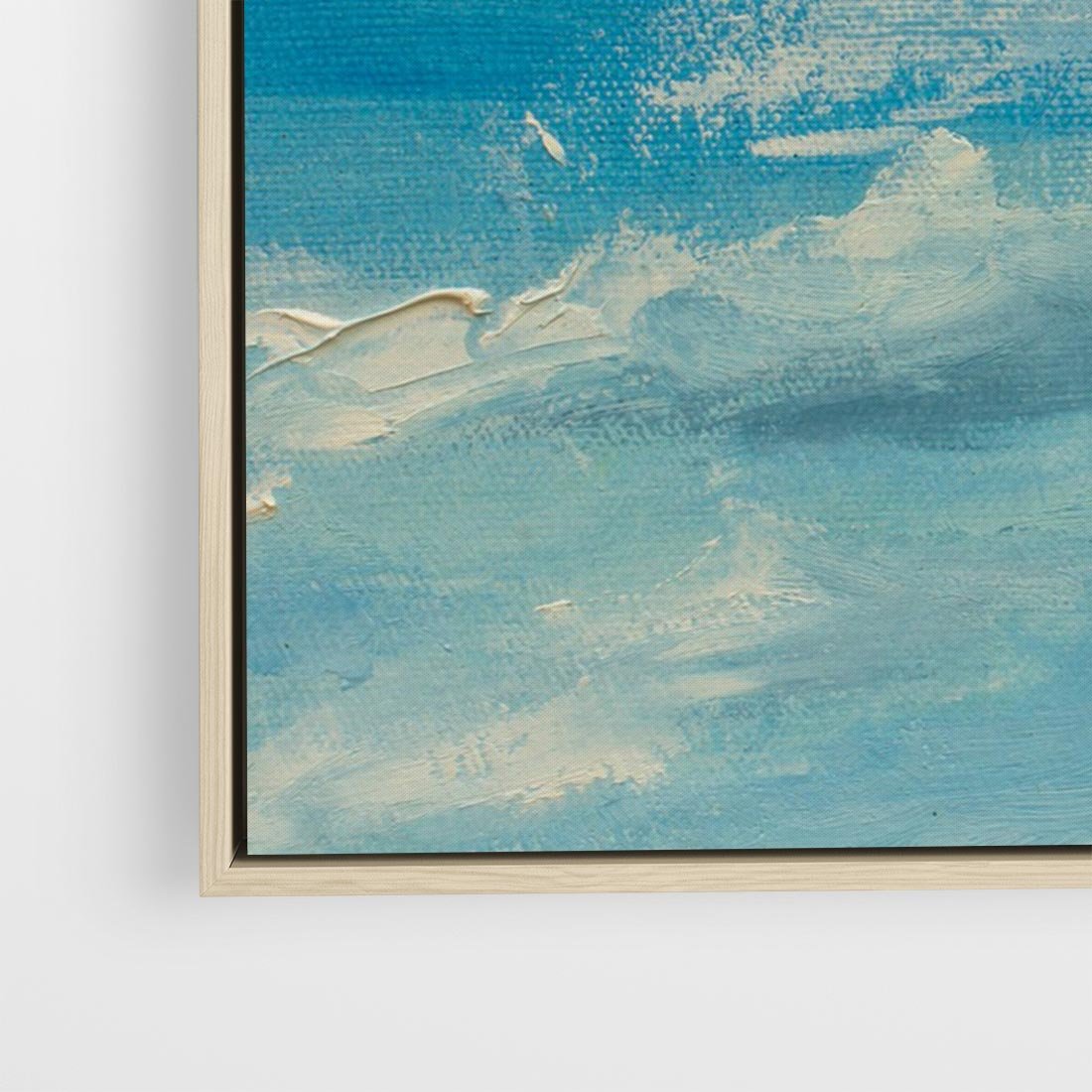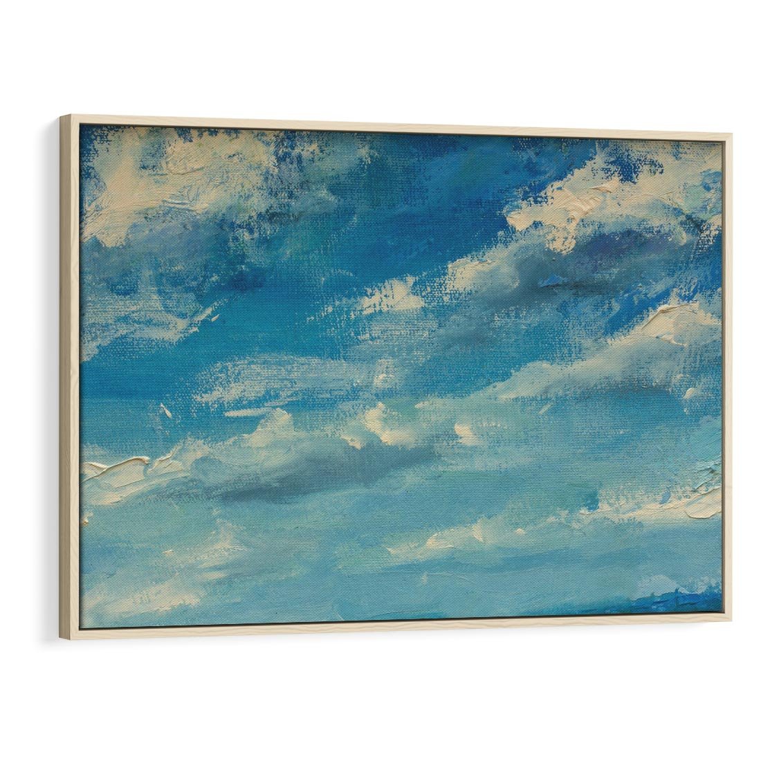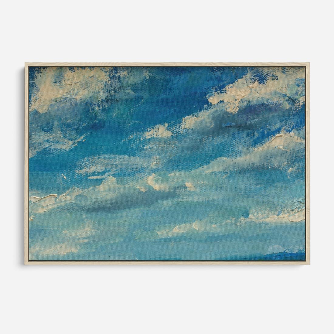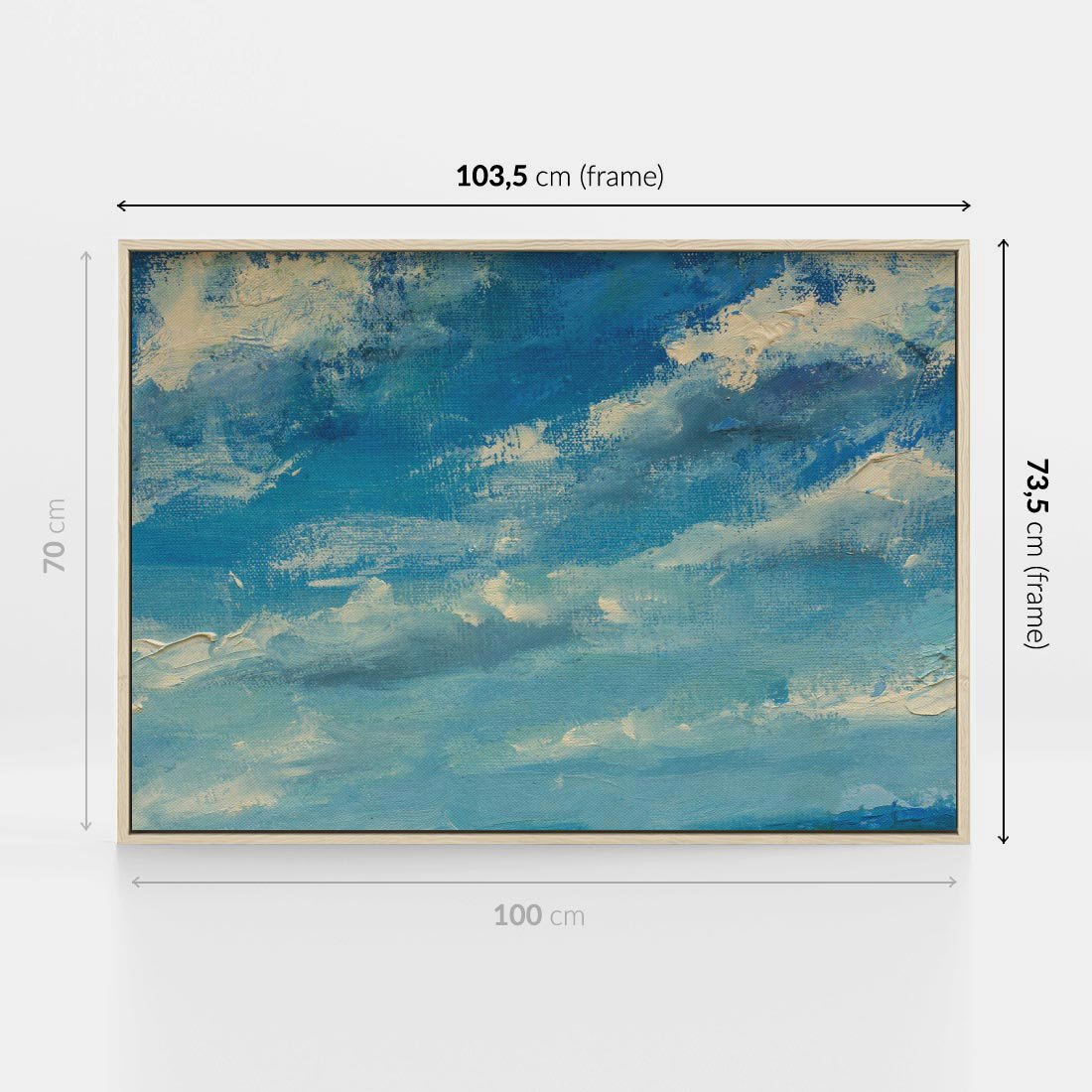 Obraz w ramie 100x70 - Oddechy niebiańskiej materii - olejny obraz, smugi farby przypominają obłoki na błękitnym niebie - rama drewno