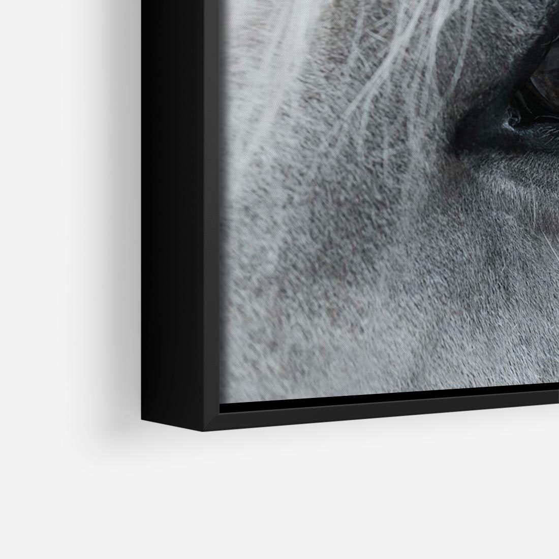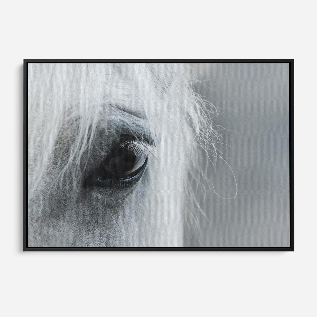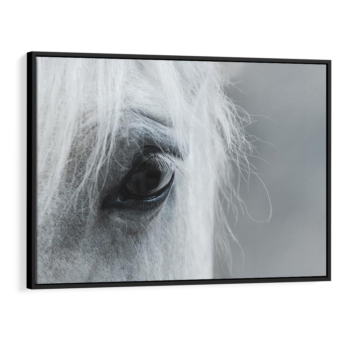 Obraz w ramie 100x70 - Oko Mocy - czarno białe zdjęcie, zbliżenie makro na oko konia - rama czarna