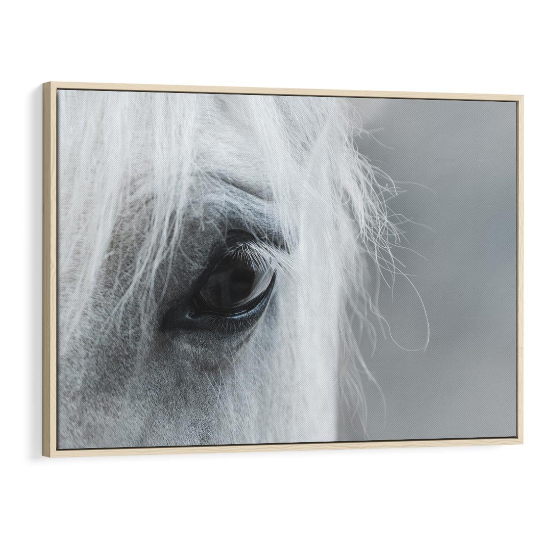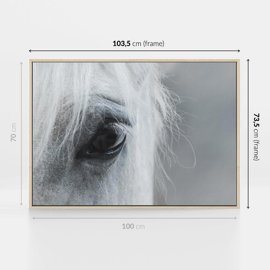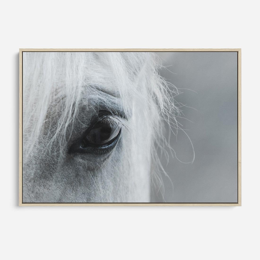 Obraz w ramie 100x70 - Oko Mocy - czarno białe zdjęcie, zbliżenie makro na oko konia - rama drewno