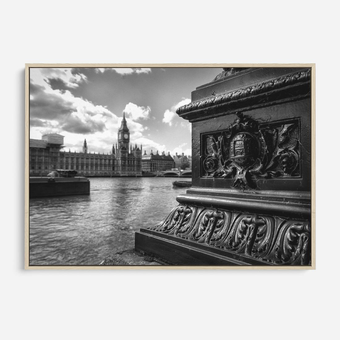 Ta czarno-biała fotografia ukazuje ikoniczne miasto - Londyn. Z widokiem na Tamizę i majestatyczny Big Ben w tle, obraz oddaje urok i elegancję tego miejsca. Kontrast między nowoczesnością a historią w Londynie widoczny jest w każdym szczególe. To pejzaż, który przenosi widza w czasie i zachwyca swoją atmosferą miejskiej tajemnicy.